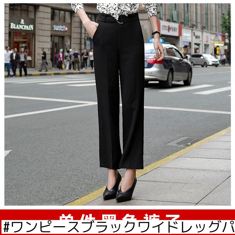 【新作】【送料無料】 レディーススーツパンツハイウエストワイドレッグパンツ秋冬ストレートスリムパンツサイドジッパー伸縮性ウエストブラックパンツドレープ-アリババ ハイウェスト エラスティック オータム 秋物 ウィンター 冬物 ワイドパンツ 12b398994376077