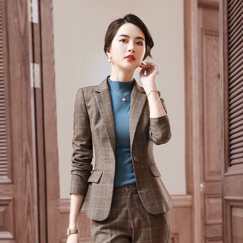 【新作】【送料無料】 スモールスーツ2021ネットレッドツーピースカジュアルチェック柄スーツジャケット女性ファッションスーツプロウェアの女神-アリババ 12b364103046981