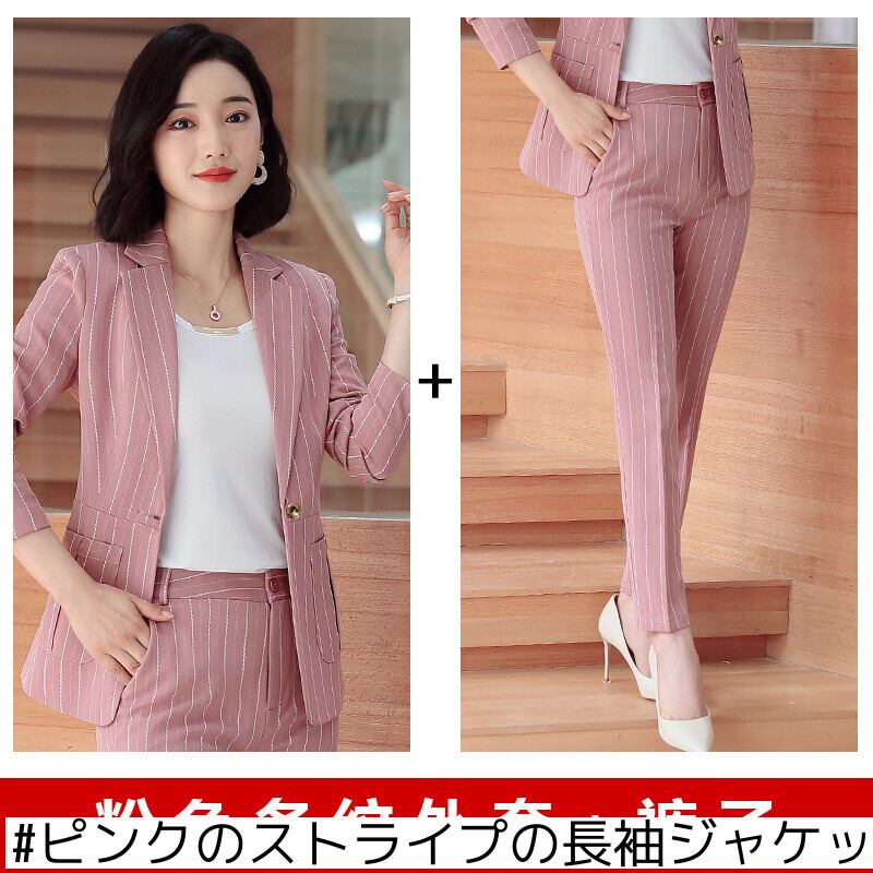 【新作】【送料無料】 ピンクのスーツジャケットの女性2020年秋の新しいハイエンド気質ファッション長袖の小さなスーツストライプのプロのスーツ-アリババ ロング オータム 秋物 12b314159764985