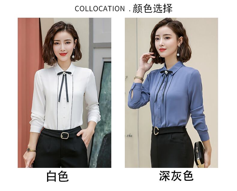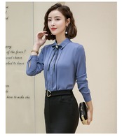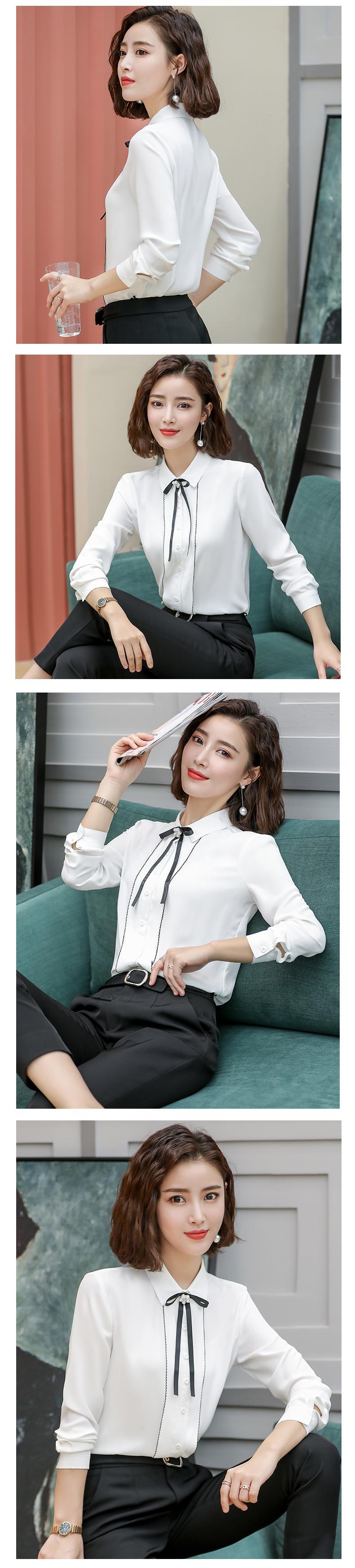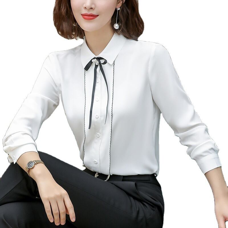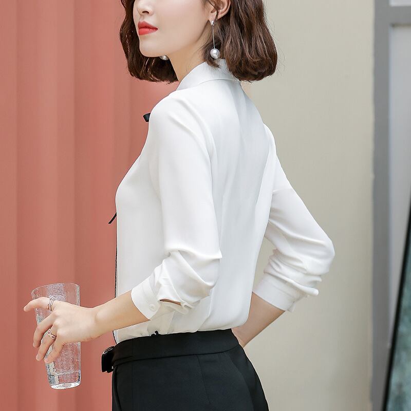 【新作】【送料無料】 シフォンシャツ女性2019新バージョンルーズファッション気質弓プロの白いシャツ女性長袖ベース-アリババ ロング ホワイト リボン 12b349976646249