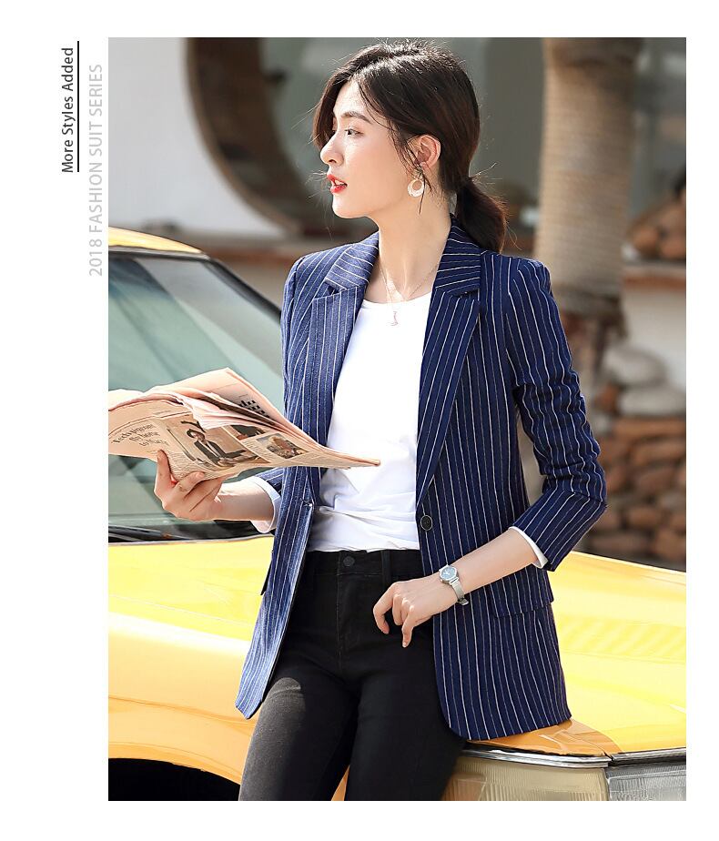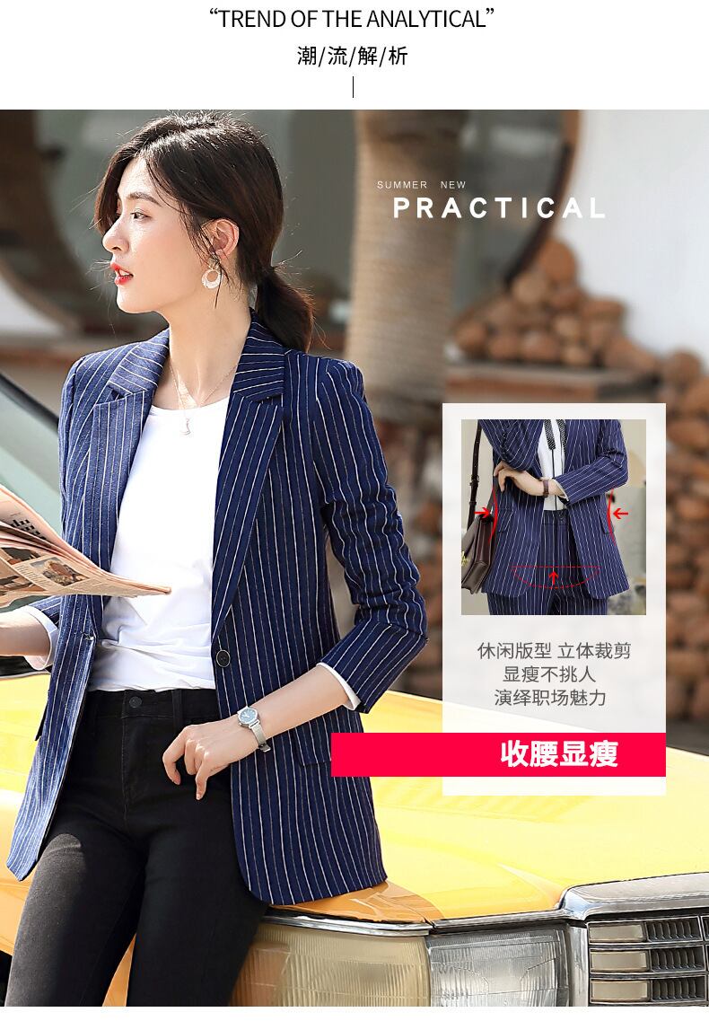 【新作】【送料無料】 ビジネスウェアスーツジャケットレディースファッション2020新しい長袖ストライプスーツジャケットマルウェアロングOL-アリババ 12b3611184398