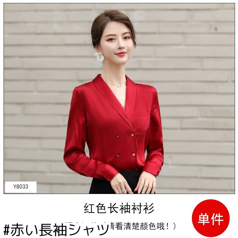 【新作】【送料無料】 赤いシフォンシャツ女性のデザインセンスニッチ2020新しいシャツ秋冬オールマッチファッション長袖白いシャツ-アリババ ロング ホワイト レッド オータム 秋物 ウィンター 冬物 12b396879292128