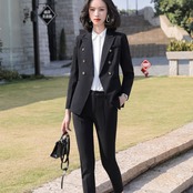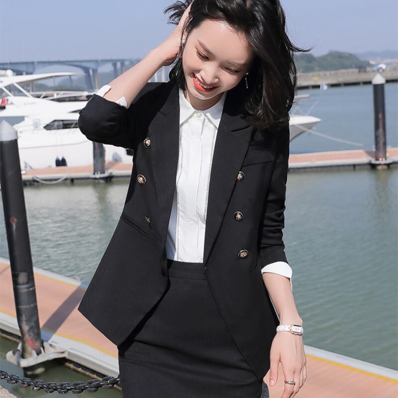 【新作】【送料無料】 黒のマルドレス女性社長スーツ、職場の気質、ハイエンドのプロの服装、大学生のインタビュースーツ、作業服-アリババ ブラック レース 12b343082903293