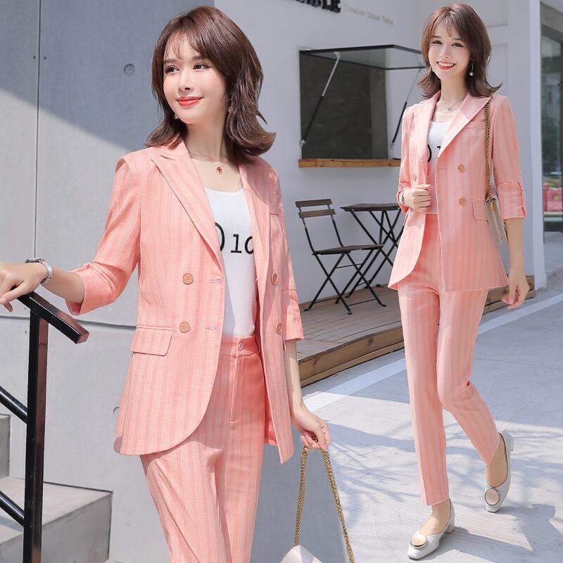 【新作】【送料無料】 ストライプスーツスーツ女性ファッションビジネスウェア気質の女神ファンカジュアルスーツ小さな香りオフィス作業服-アリババ 会社 学校 通勤や通学にも 12b355833748889