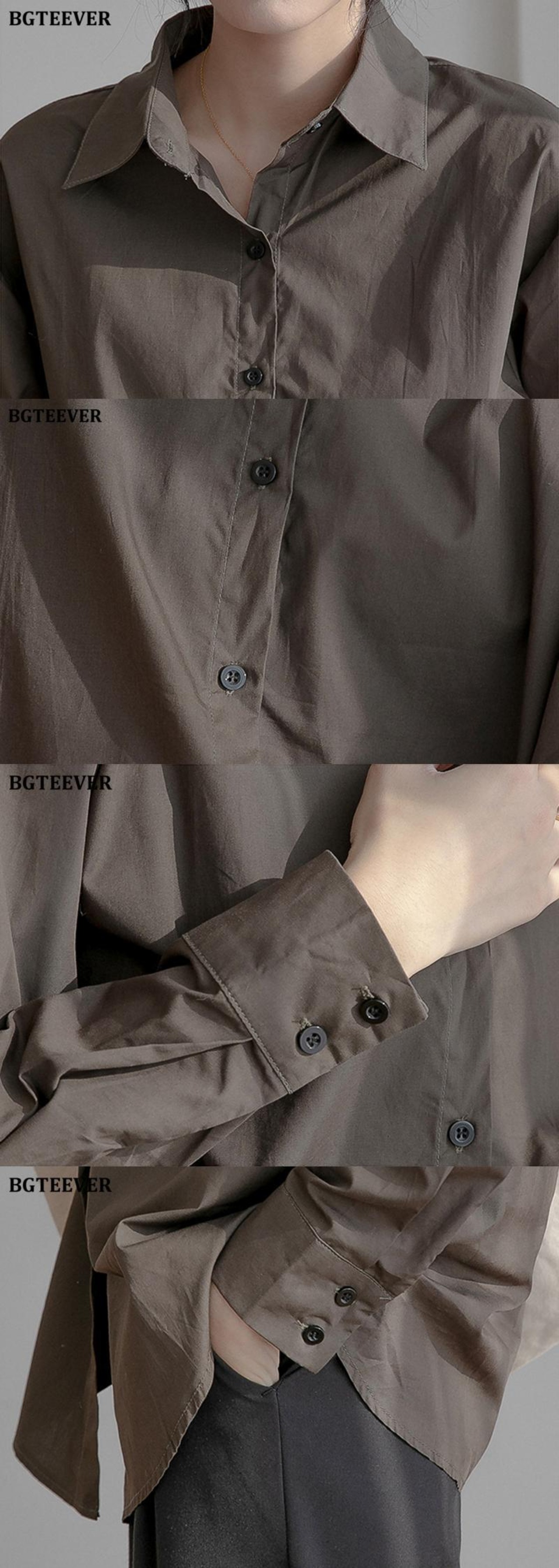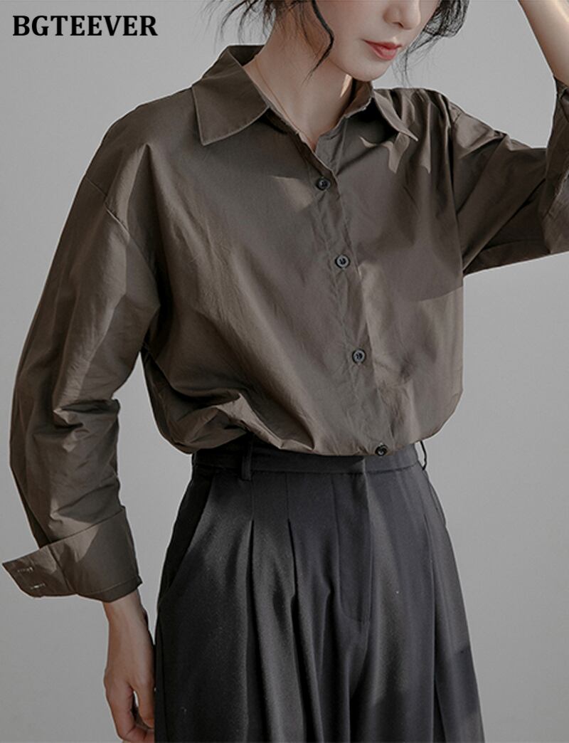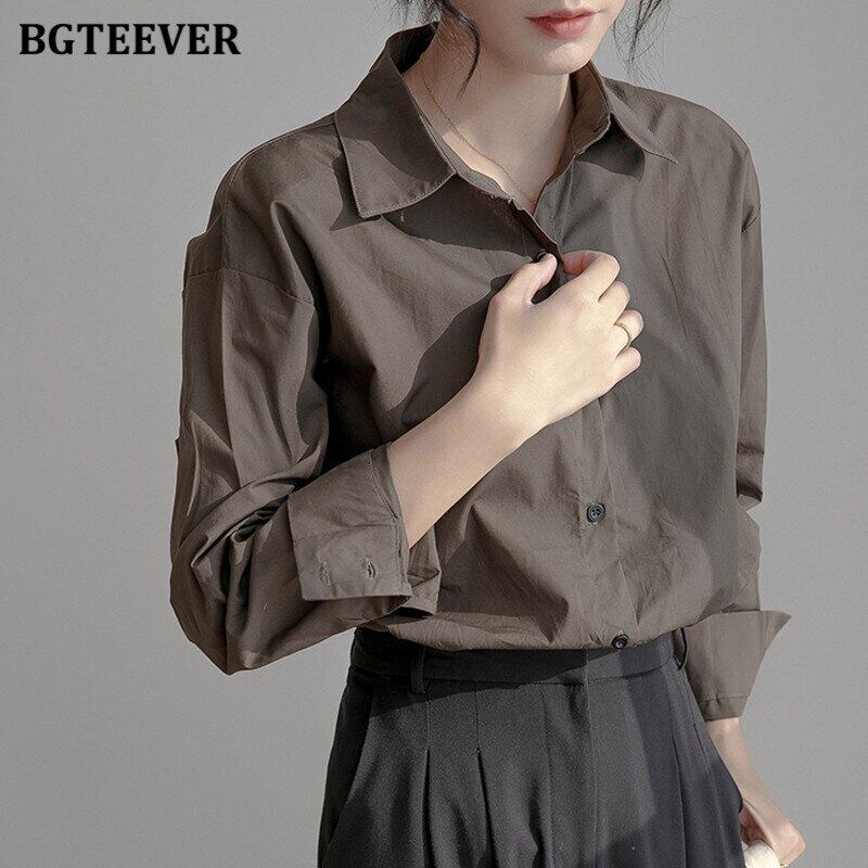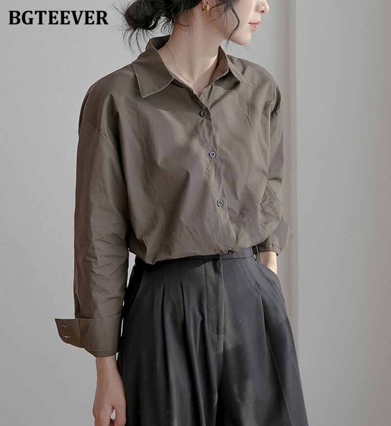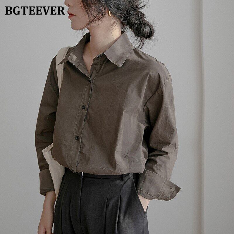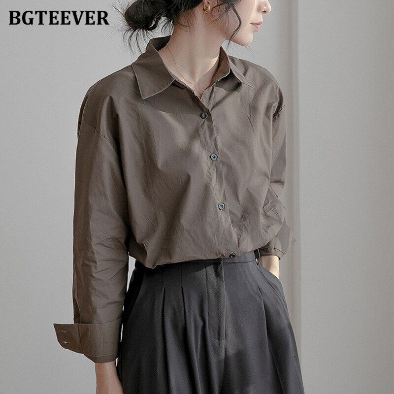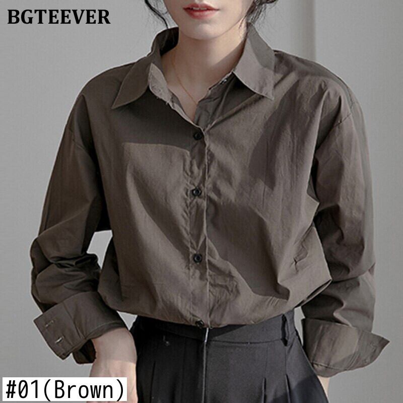 【新作】【送料無料】 BGTEEVERターンダウンカラー女性ブラウスヴィンテージ長袖ルーズソリッドシャツ2021トップス春 ロング スプリング 春物 ソリッドカラー ビンテージ 12b157570062215