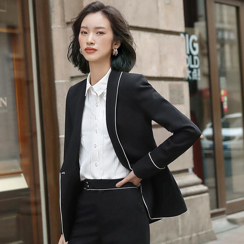【新作】【送料無料】 2020年初秋に働くプロのスーツの女性のファッション気質新しい黒の長袖スーツ大学生のマルウェア秋-アリババ ロング ブラック オータム 秋物 12b353907511100