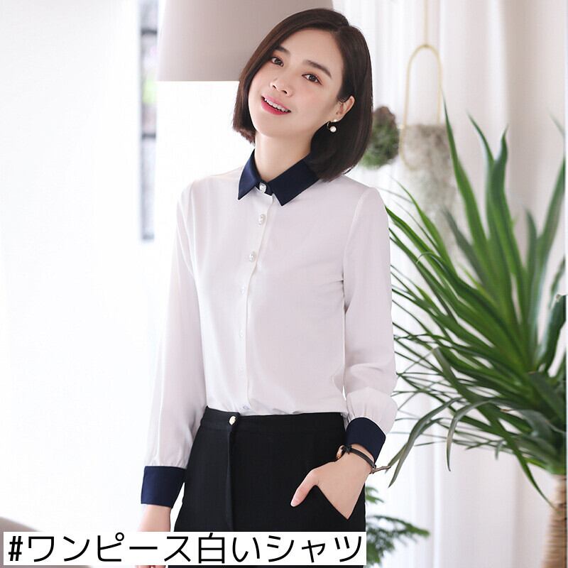 【新作】【送料無料】 シフォンシャツ女性長袖早春新ファッションルーズカラーマッチングビジネスシャツ気質ホワイトカラー女性-アリババ ロング スプリング 春物 12b374113030205