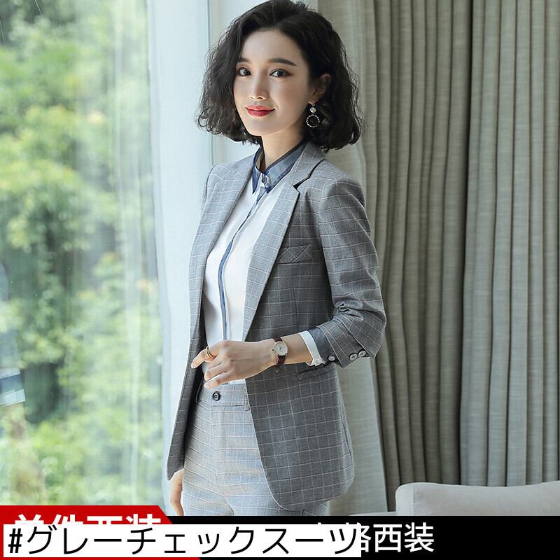 【新作】【送料無料】 ビジネスウェアレディース春秋ニューグレーマルウェアファッションスリムスーツスーツ気質チェックスーツオーバーオール-アリババ スプリング 春物 オータム 秋物 12b38547146898
