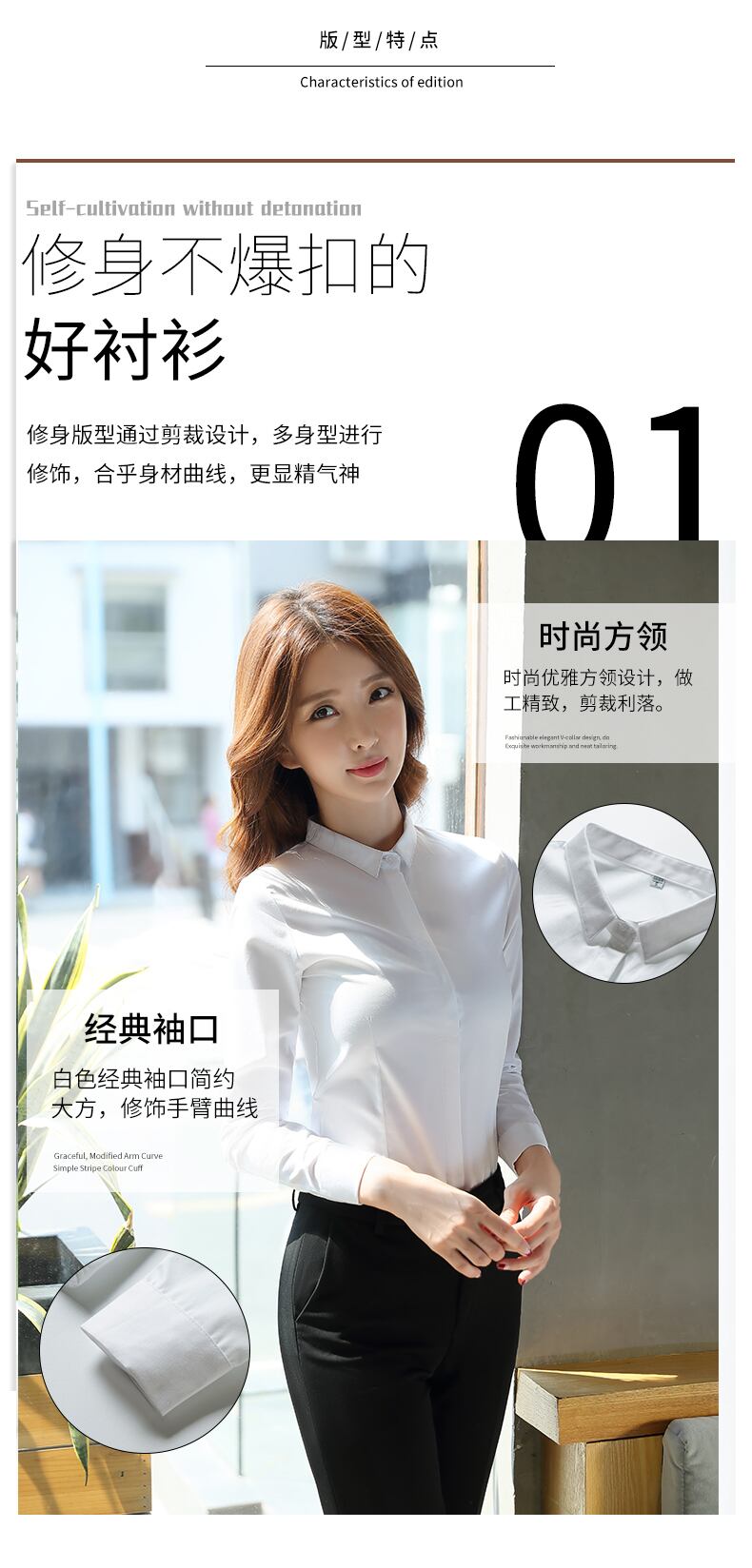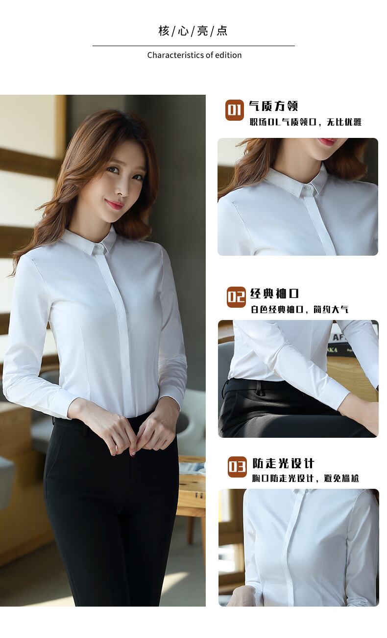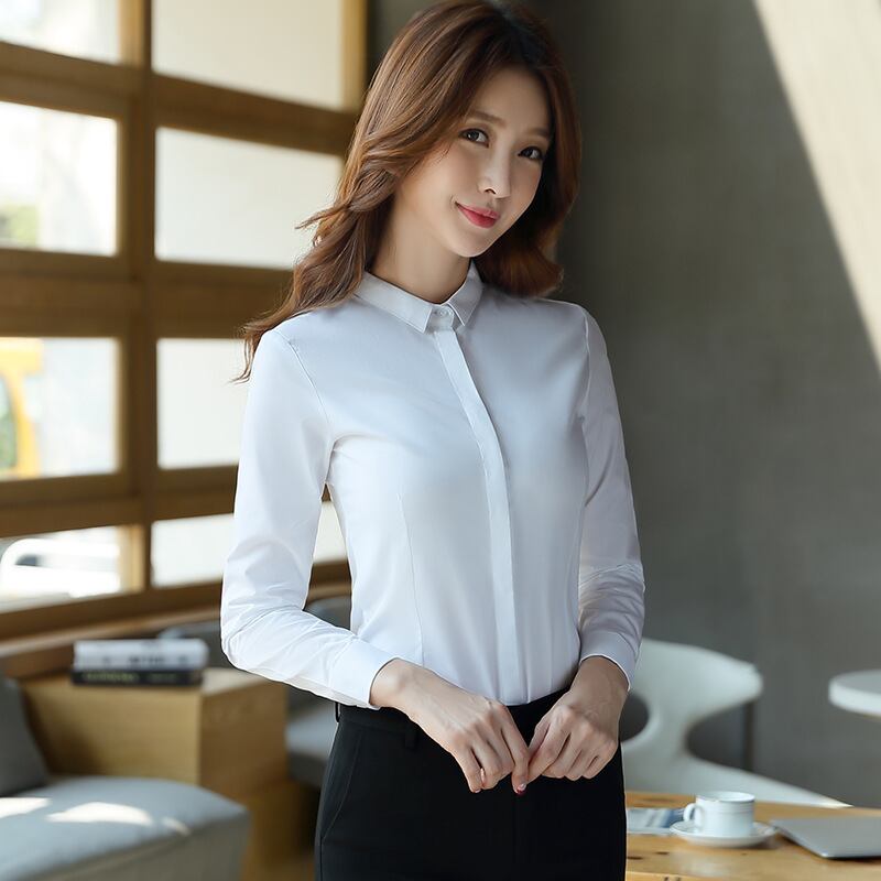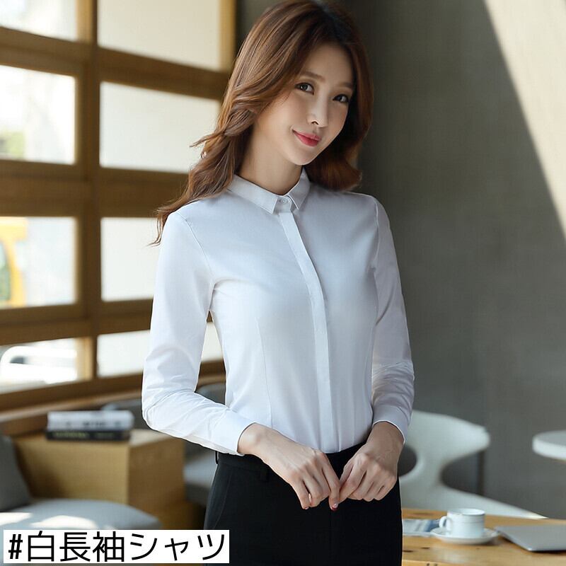 【新作】【送料無料】 白いシャツ長袖シャツオーバーオール気質シャツ2020新しいスリムフィットマルウェアプロの作業服女性のトップ ロング ホワイト 12b382847959103