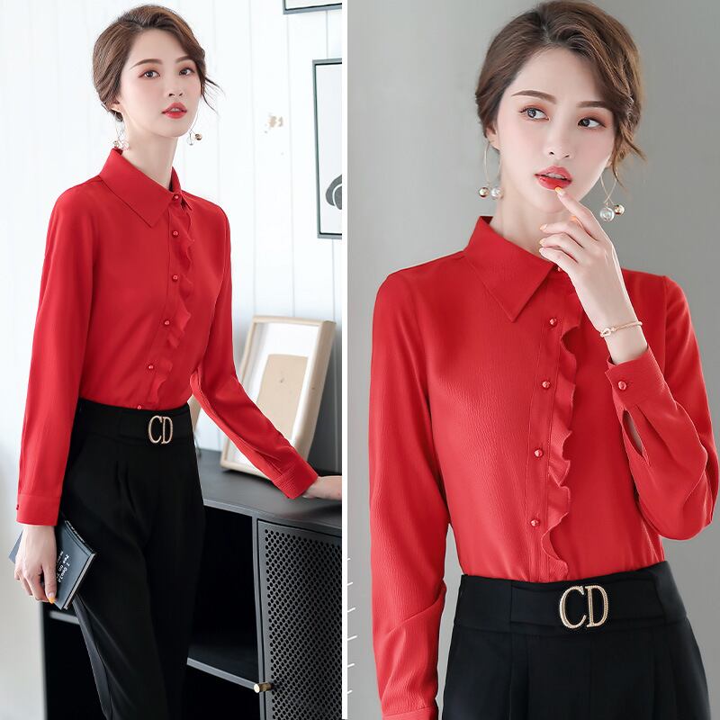 【新作】【送料無料】 赤いシャツスーツの女性2020新しい春のファッション気質ロイヤルシスターウエスタンフェミニンな服ツーピースパンツ-アリババ レッド スプリング 春物 12b312003990924