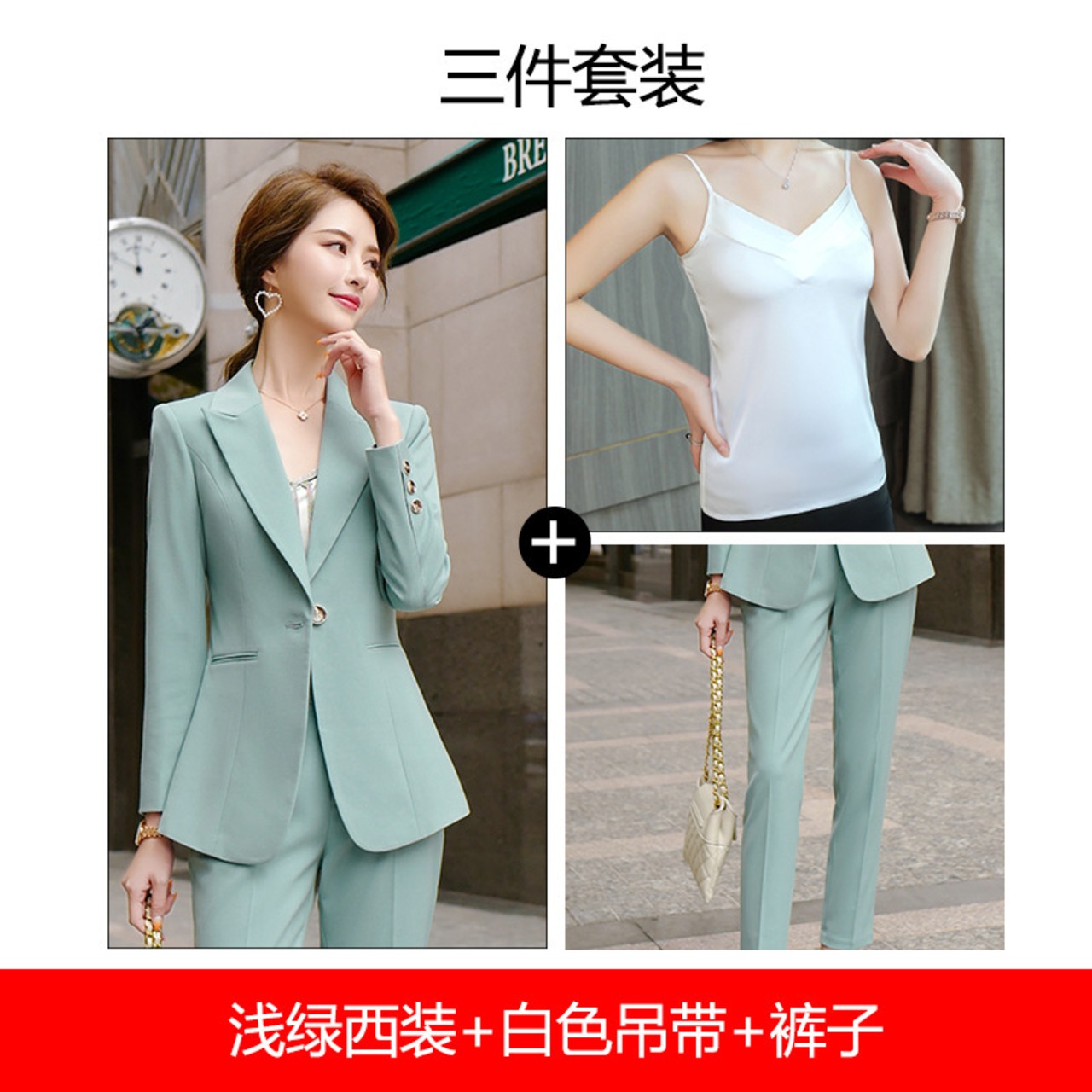 色:黒のシングルスーツ,ライトグリーンのシングルスーツ,黒(スーツ+ズボン),ライトグリーンのスーツ+ライトグリーンのパンツ,黒(スーツ+サスペンダー+ズボン),ライトグリーン(スーツ+サスペンダー+ズボン)