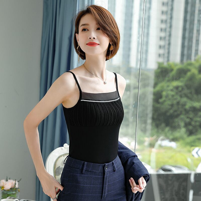 【新作】【送料無料】 女性のボトミングシャツ、2021年夏の新しい流行の小さなスーツ、黒い小さなキャミソール、春と秋のトップ-アリババ ブラック スプリング 春物 サマー 夏物 オータム 秋物 12b368128285451