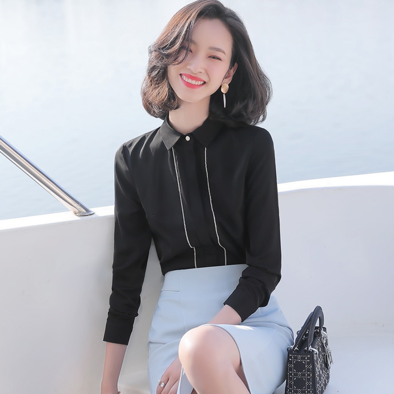【新作】【送料無料】 黒のシフォンシャツ女性の長袖2020年春の新しいスタイルのスリムな痩身プロのシャツマルウェアの作業服-アリババ ロング ブラック スプリング 春物 12b373539187179
