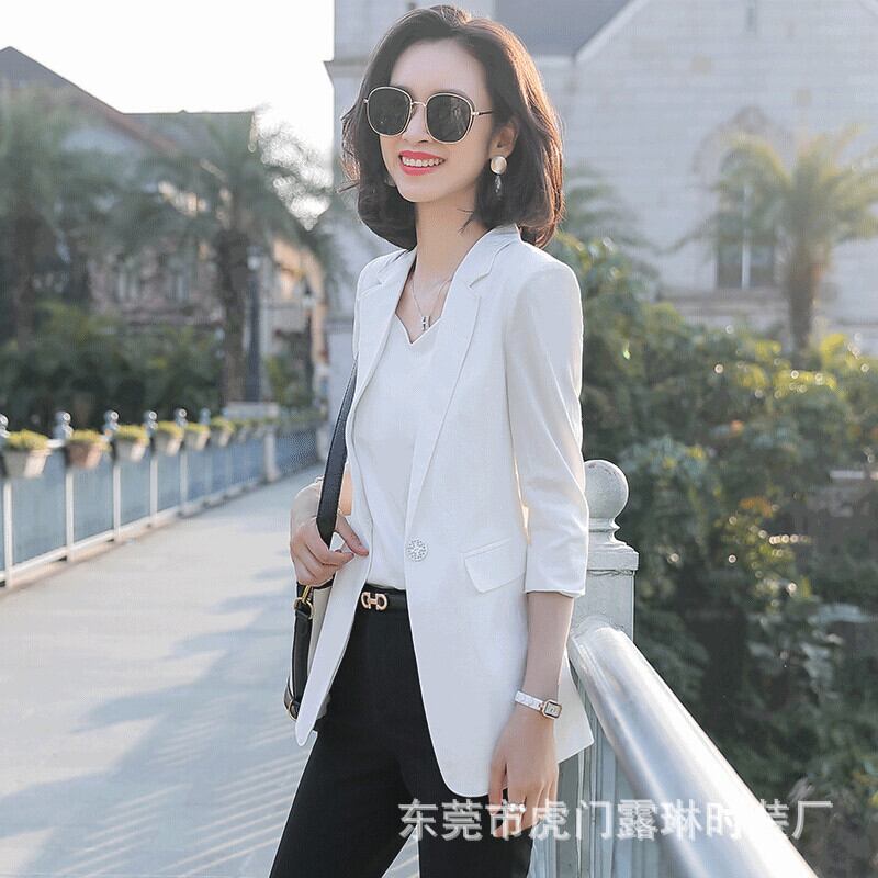 【新作】【送料無料】 黄色のスーツジャケット女性2020年春の新しいカジュアルルーズスリムオールマッチスモールスーツホワイトトップ-アリババ スプリング 春物 12b369321853987