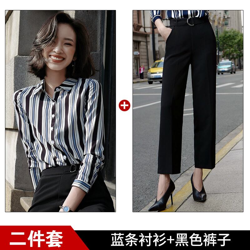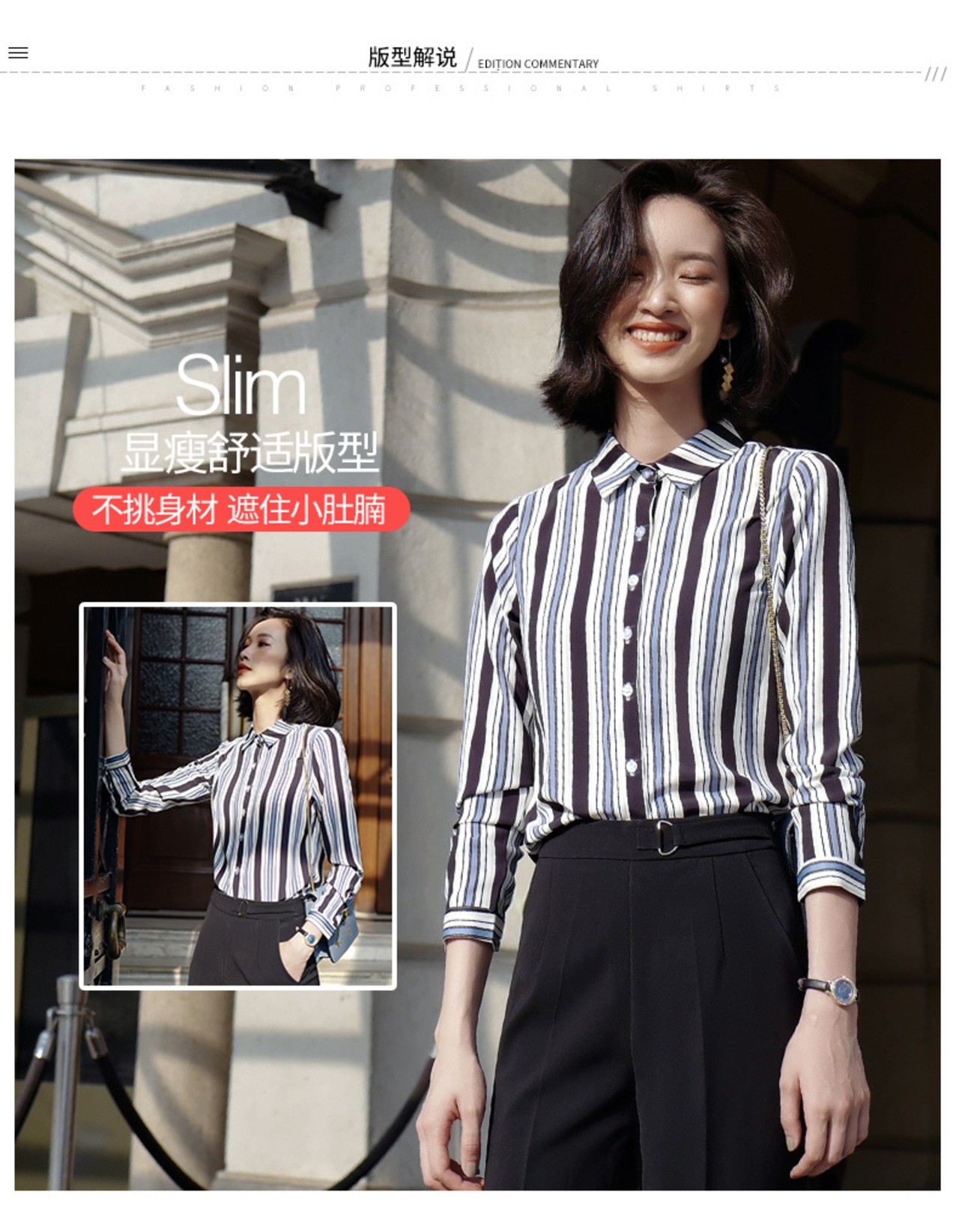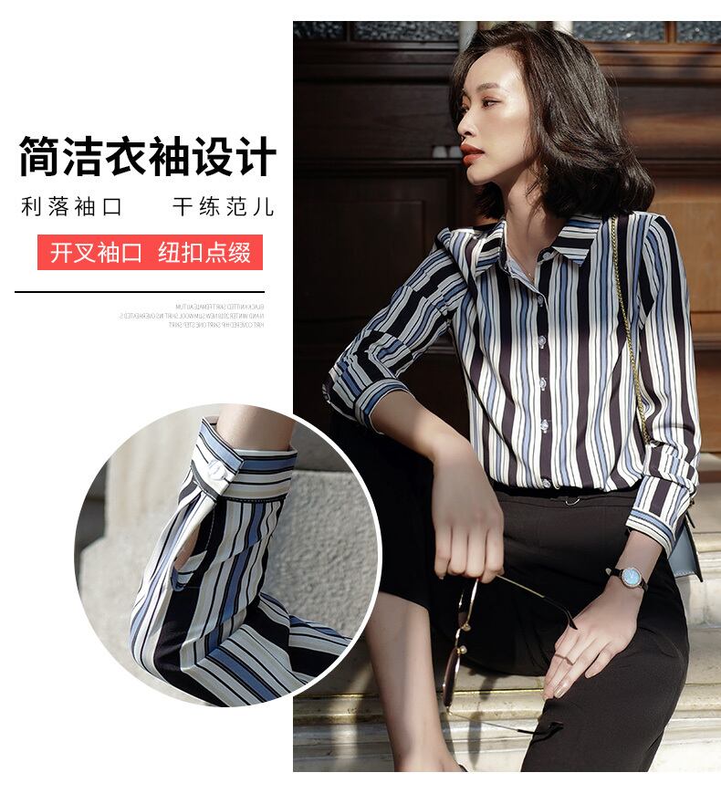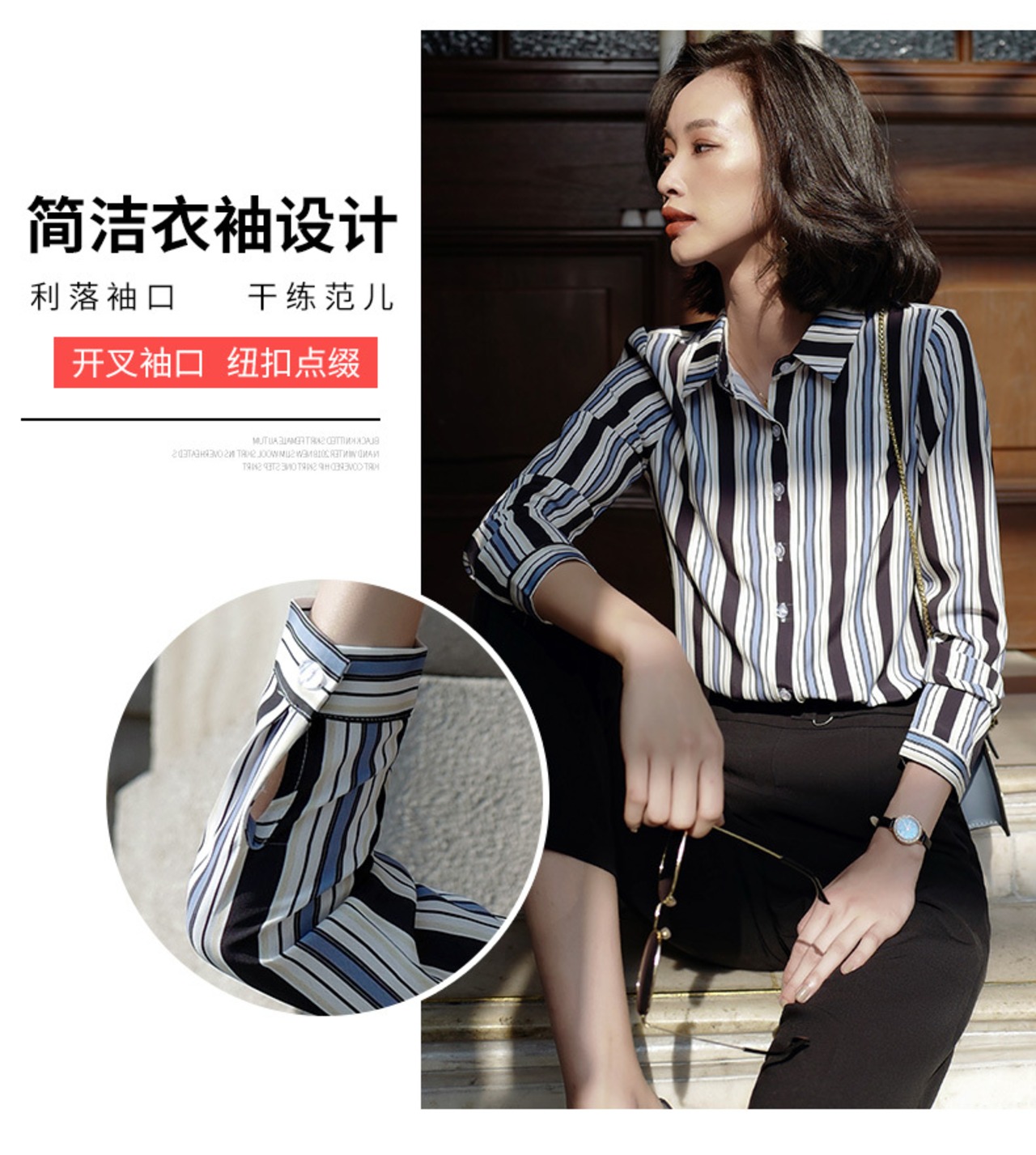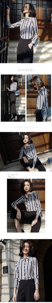 【新作】【送料無料】 秋の縦縞シフォンシャツレディース長袖ルーズスタイル2019春春スタイルシャツ-アリババ ロング スプリング 春物 オータム 秋物 ストライプ 12b322932221399