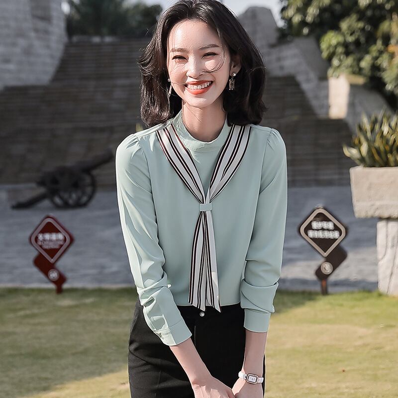 【新作】【送料無料】 2021年春初頭の女性用長袖シャツ新しいファッションのエインスタイルのオールマッチブラウスプロのブリティッシュスタイルのホワイトリボンシャツ-アリババ ロング スプリング 春物 12b377154364815