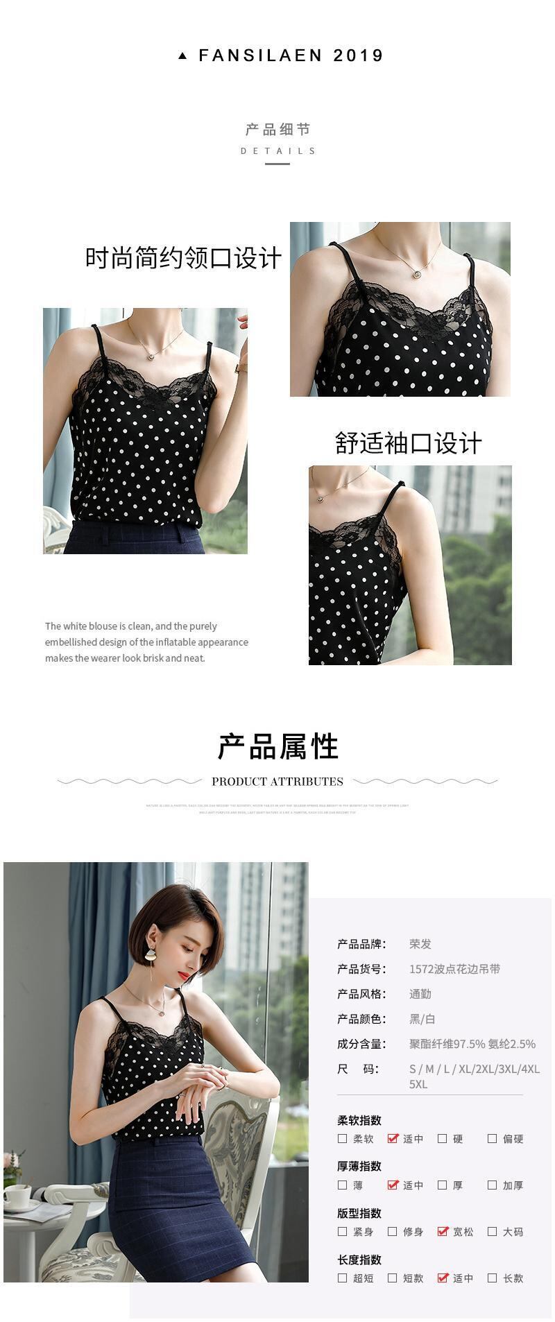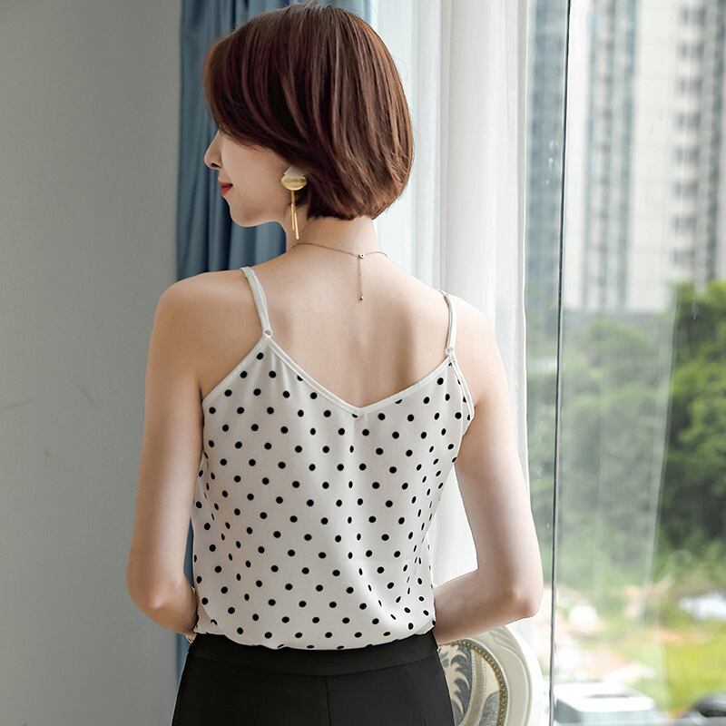 【新作】【送料無料】 2021年の新しいバージョンのインナーボトミングシャツ、Vネックルーズトップ、ポルカドットキャミソール、レディースサマーアウターウェア-アリババ 夏物 12b389031426735