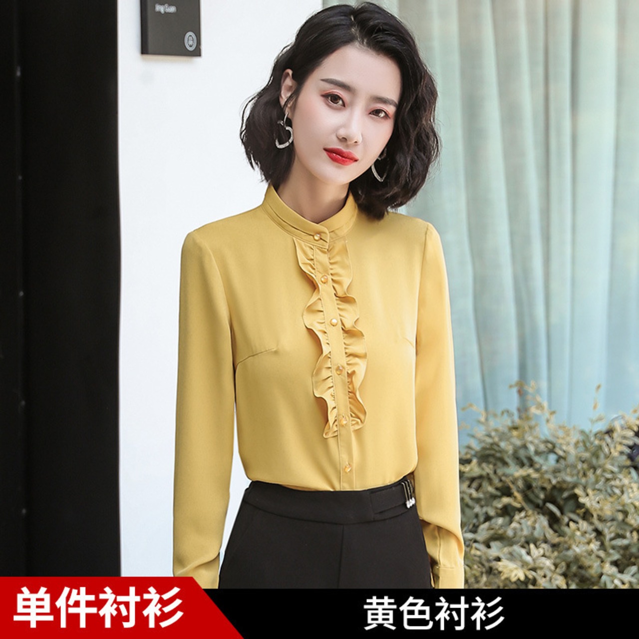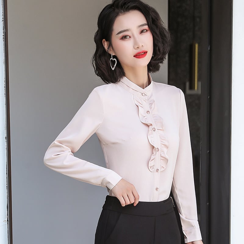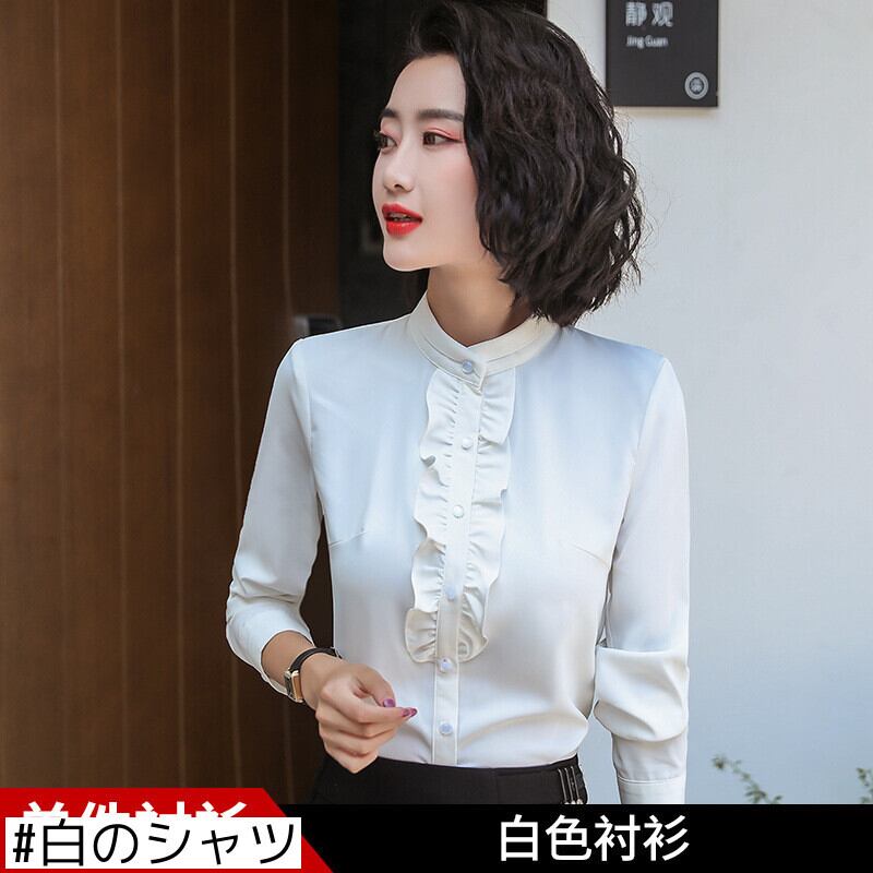 【新作】【送料無料】 ウエスタンスタイルのシャツ女性の秋の服2021新しいスタイルのスリムな痩身白いシャツキクラゲの長袖トップ-アリババ ロング ホワイト オータム 秋物 12b323823001354