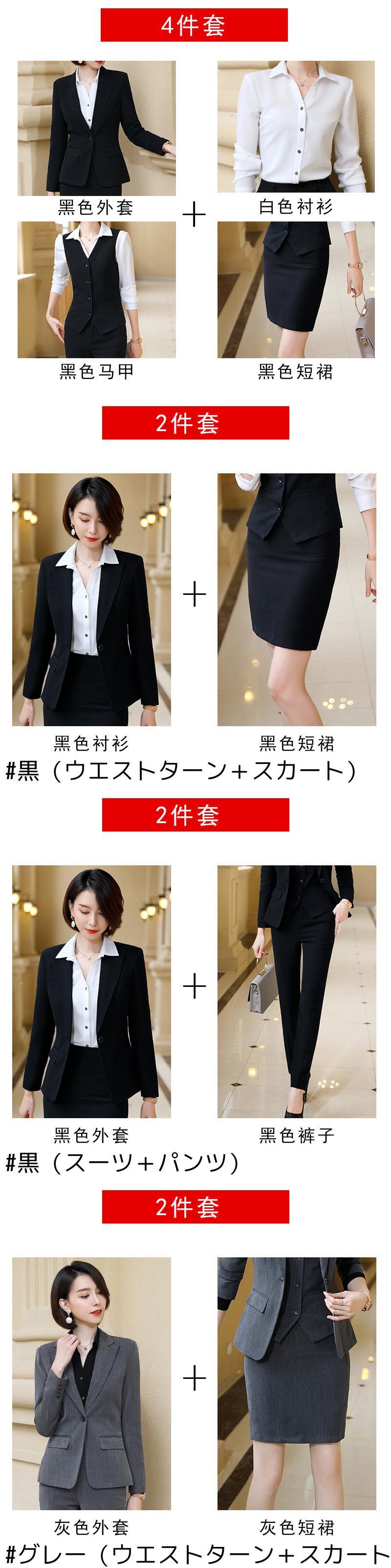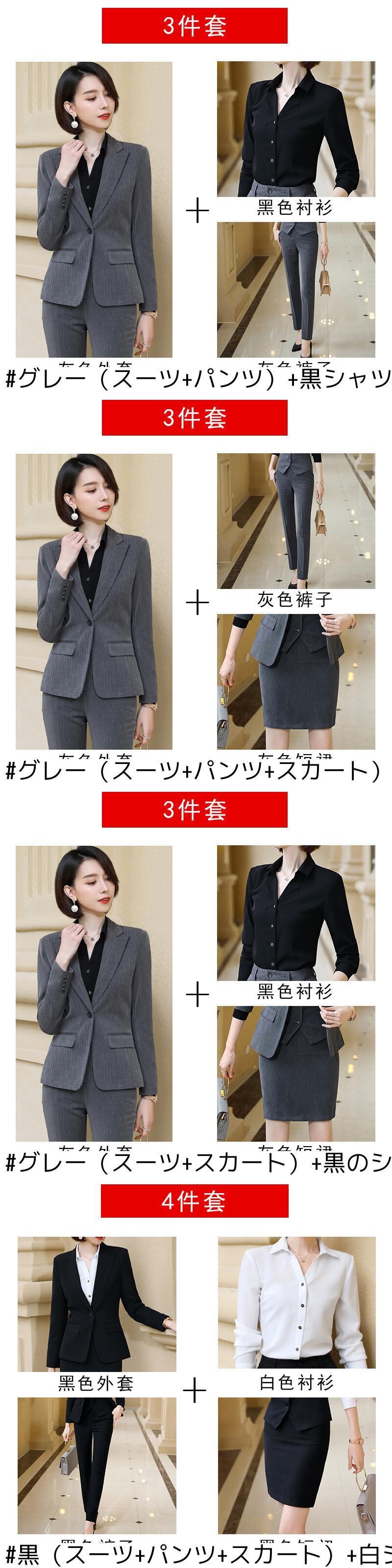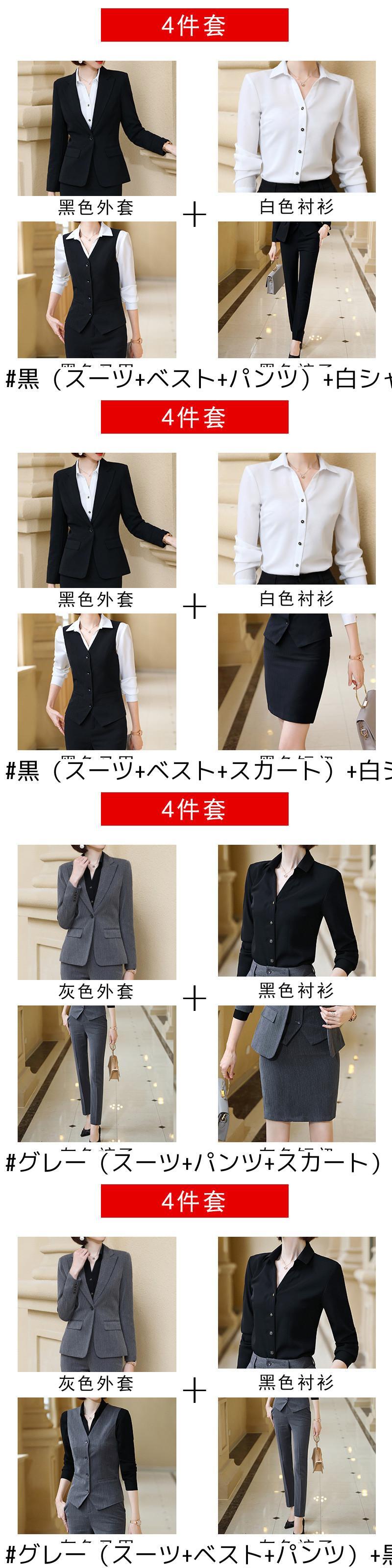 色:黒(ウエストターン+スカート),黒(スーツ+パンツ),グレー(ウエストターン+スカート),グレー(スーツ+パンツ),黒(スーツ+パンツ)+白シャツ,黒(スーツ+パンツ+スカート),黒(スーツ+スカート)+白シャツ,グレー(スーツ+パンツ)+黒シャツ,グレー(スーツ+パンツ+スカート),グレー(スーツ+スカート)+黒のシャツ,黒(スーツ+パンツ+スカート)+白シャツ,黒(スーツ+ベスト+パンツ)+白シャツ,黒(スーツ+ベスト+スカート)+白シャツ,グレー(スーツ+パンツ+スカート)+黒シャツ,グレー(スーツ+ベスト+パンツ)+黒のシャツ,グレー(スーツ+ベスト+スカート)+黒のシャツ,黒(スーツ+ベスト+スカート+パンツ)+白シャツ,グレー(スーツ+ベスト+スカート+パンツ)+黒のシャツ