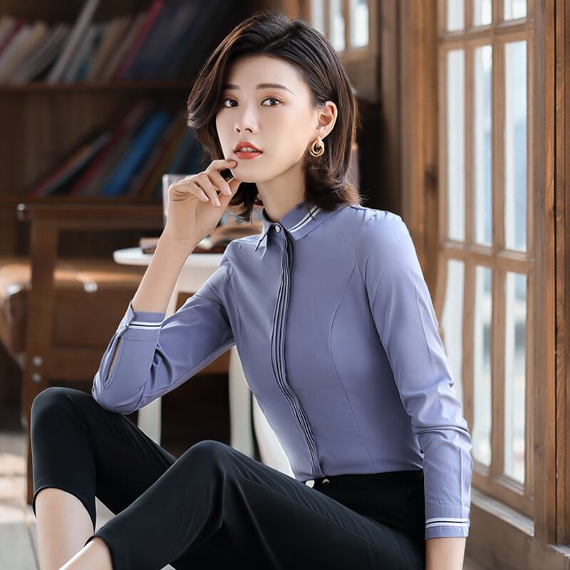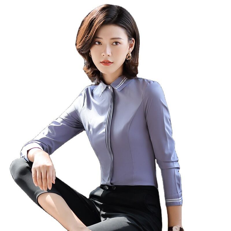 【新作】【送料無料】 プロのシャツの女性の秋と冬のモデルは、オールマッチのオールコミューターファッション気質ウエスタンスタイルのシャツ長袖シャツ白いオーバーオール-アリババ ロング ホワイト オータム 秋物 ウィンター 冬物 12b356704398867