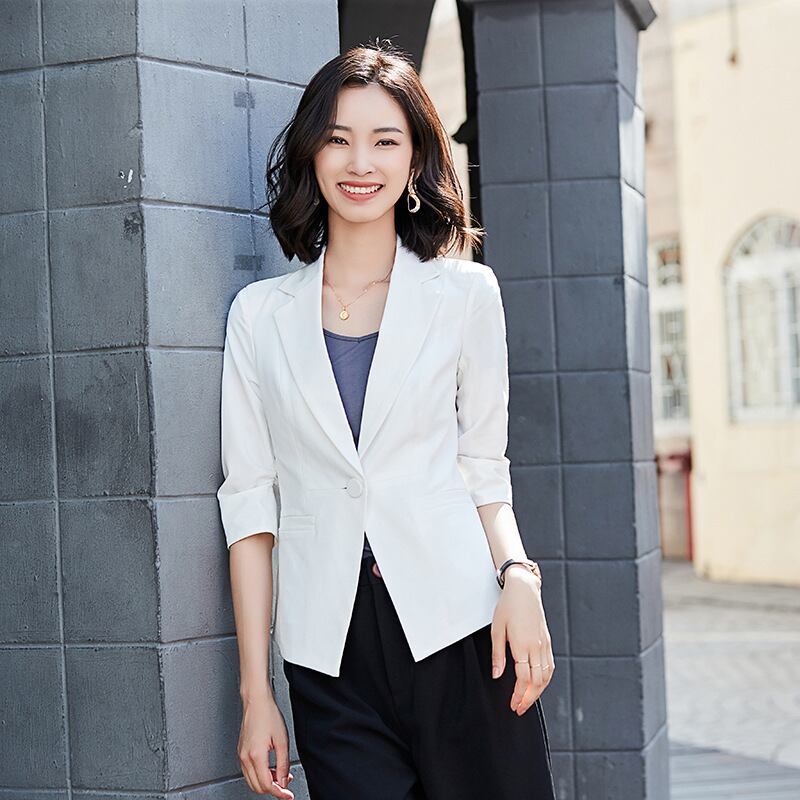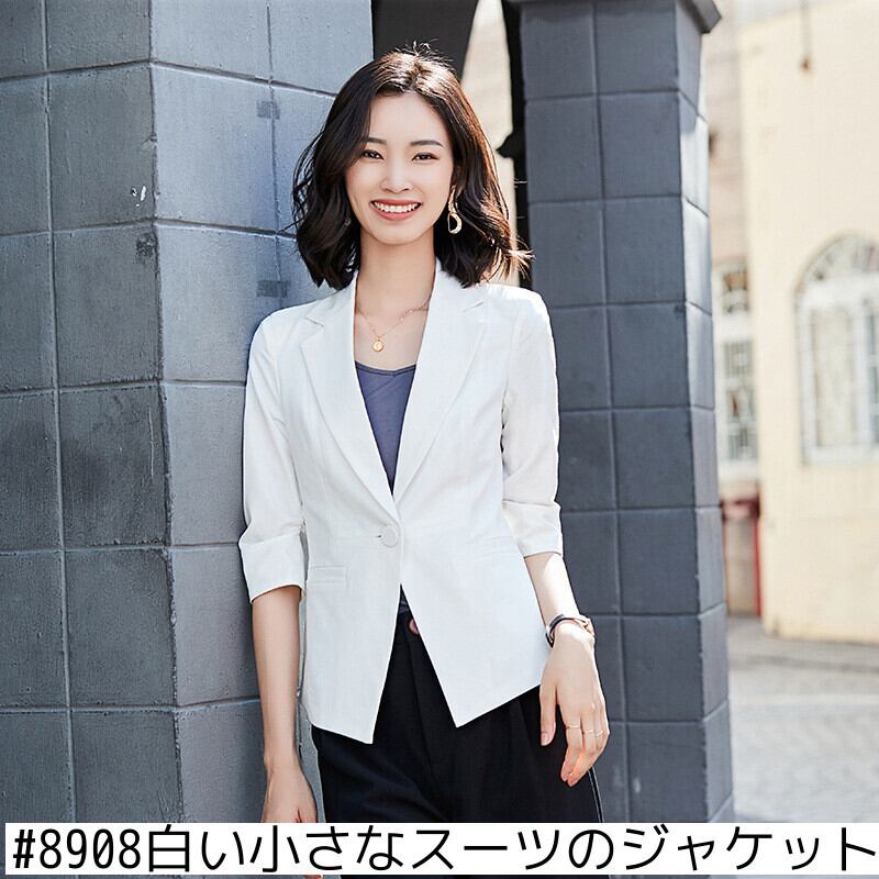 【新作】【送料無料】 2020年春の新しいスモールスーツジャケットの女性のファッションスリムショートウエストホワイトカジュアルスーツジャケット-アリババ スプリング 春物 12b352780731848