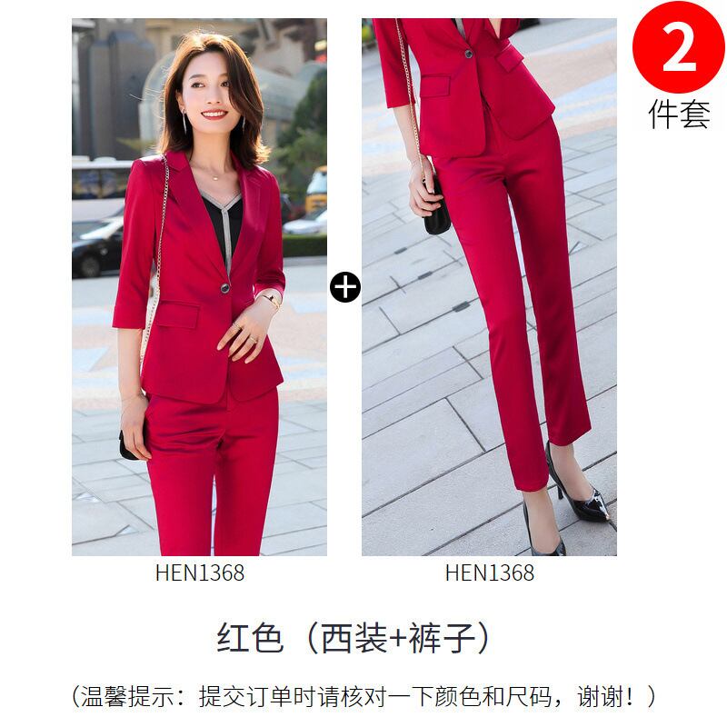 【新作】【送料無料】 2020年春の新しいレトロな赤いスーツジャケット女性のファッション気質プロのスーツスリムオーバーオール-アリババ レッド スプリング 春物 12b310806342762