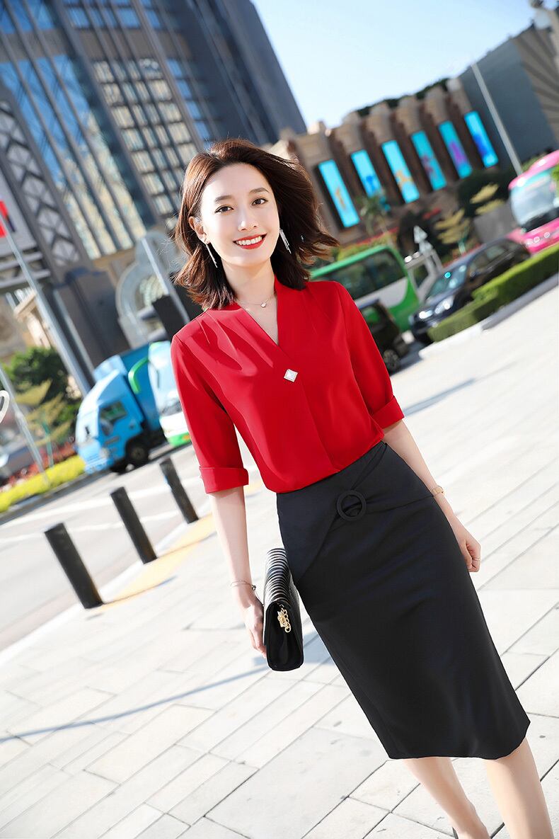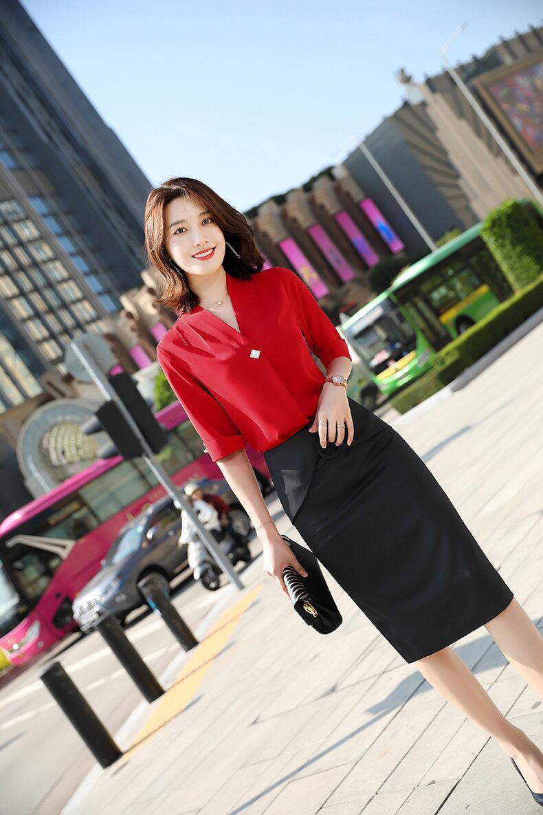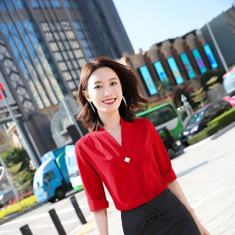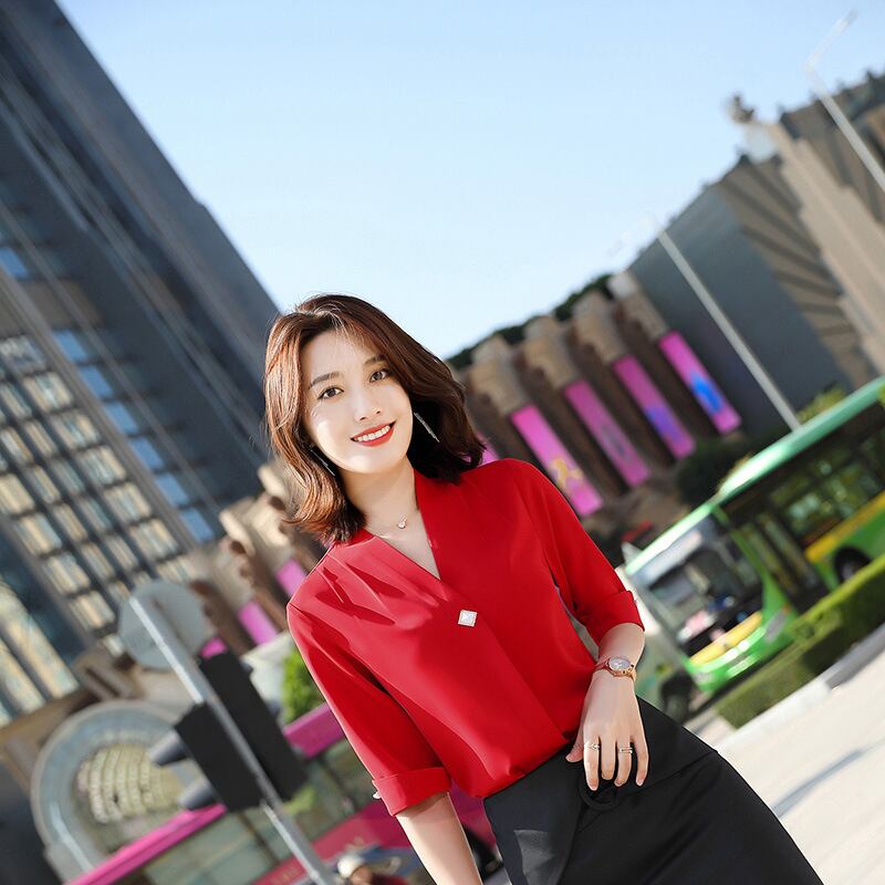 【新作】【送料無料】 レッドシャツの女性の秋と冬のモデルオールマッチデザインセンスニッチ2021新しいレトロな香港フレーバーシフォンブラウススリーブシャツ-アリババ オータム 秋物 ウィンター 冬物 12b343065302692