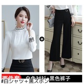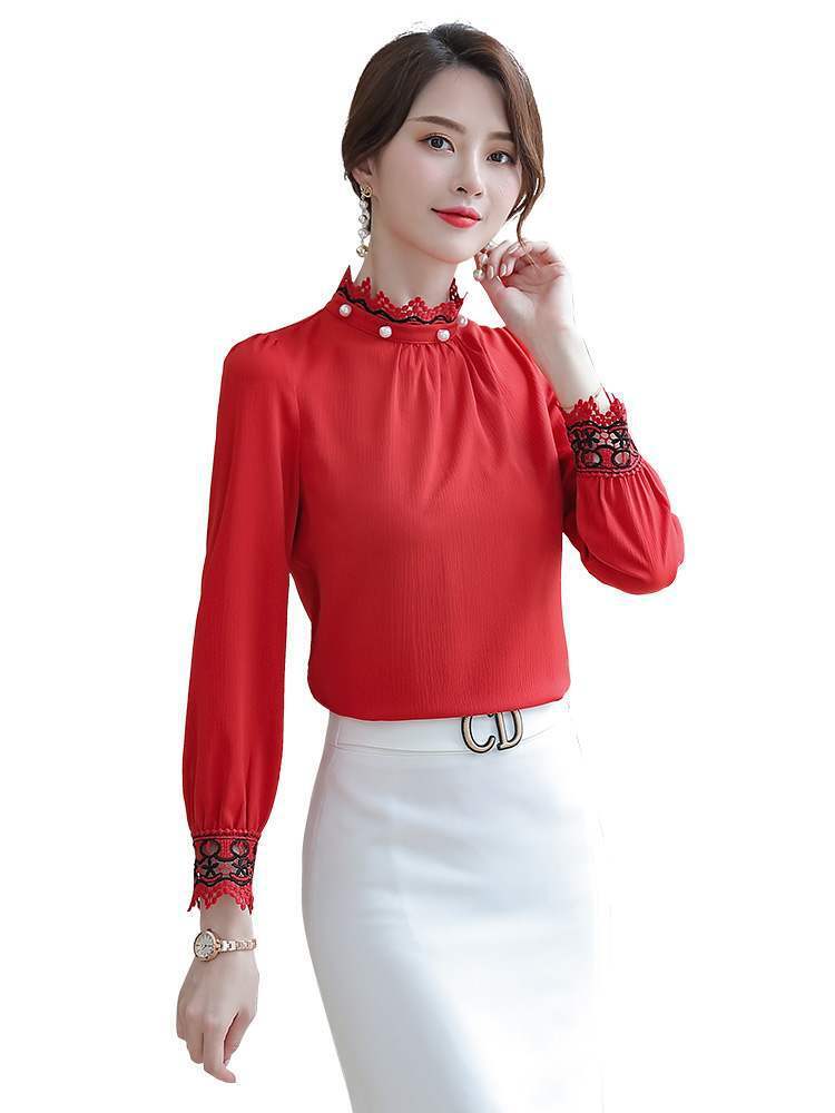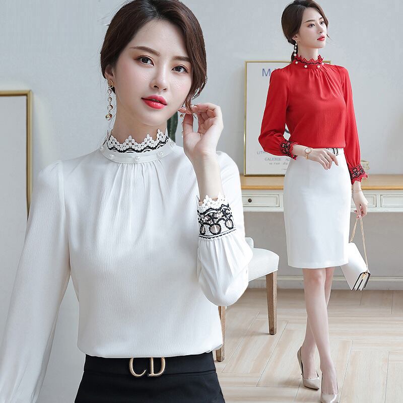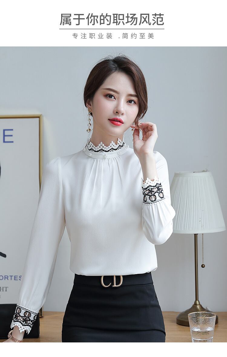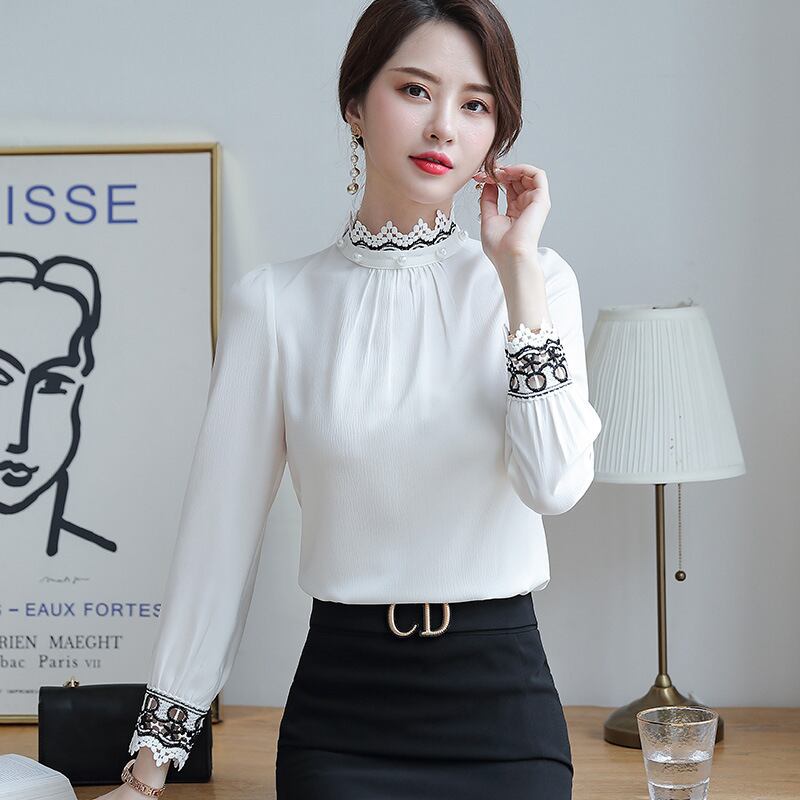【新作】【送料無料】 2020年秋の新しい白いシフォンシャツレディースレースラウンドネックデザインニッチトップス、エインスタイルと薄いボトミングシャツ-アリババ ホワイト オータム 秋物 Oネック 12b365215600666