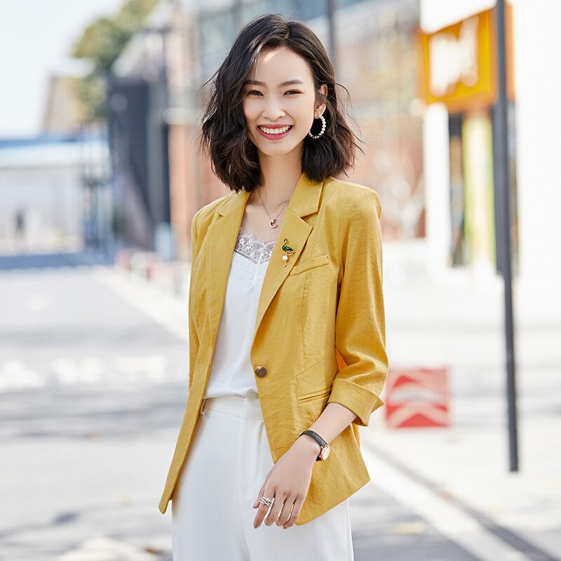 【新作】【送料無料】 早春の新しいプロの小さなスーツファッション半袖薄手のスーツジャケットビジネスOL作業服ジャケット女性-アリババ ショート ハーフスリーブ スプリング 春物 12b371734905910