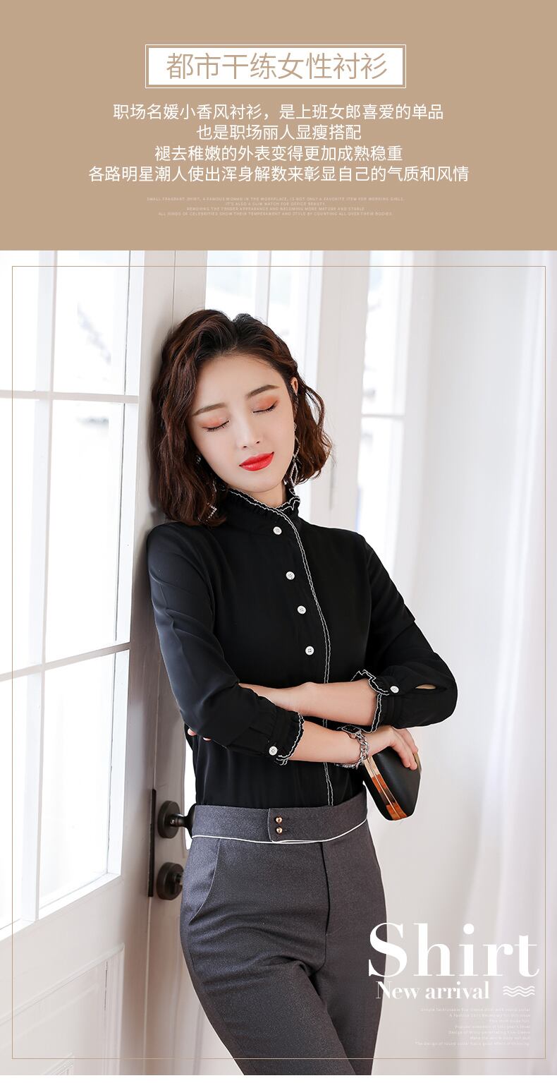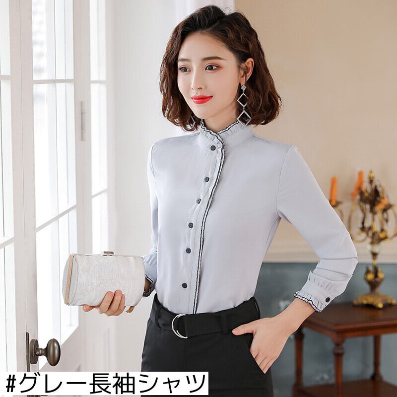 【新作】【送料無料】 2020年の新しいシフォンシャツの女性のレトロなスタンドアップカラーの白いシャツのデザインセンスニッチの長袖秋バージョン-アリババ ロング ホワイト オータム 秋物 12b374971320545