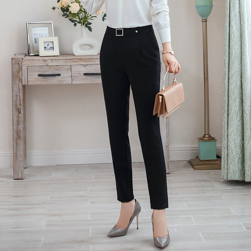 【新作】【送料無料】 スーツパンツプロの9ポイントパンツストレートシックなハイウエストオーバーオールolクールな足のズボン女性秋のワークパンツズボン-アリババ ハイウェスト オータム 秋物 12b392224452146