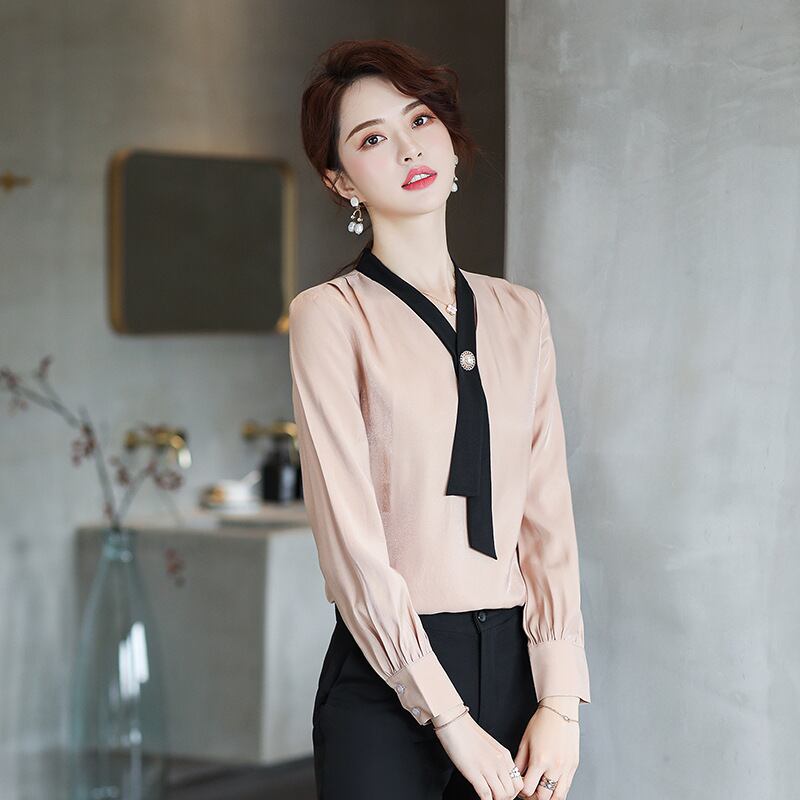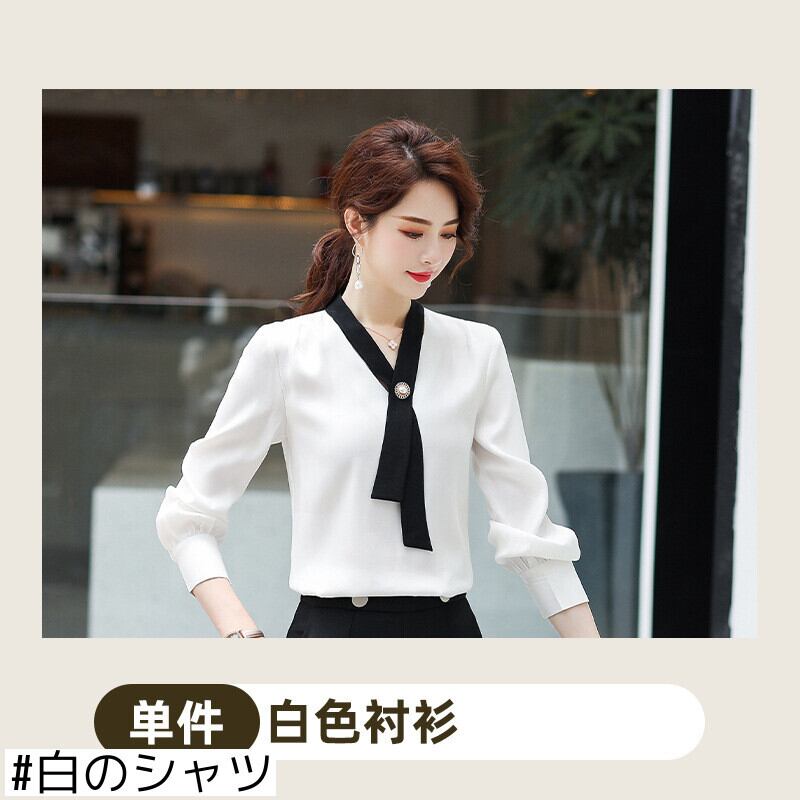 【新作】【送料無料】 長袖シャツの女性2020新しい秋のファッション気質プロの白いシャツボトミングトップオーバーオール-アリババ ロング ホワイト オータム 秋物 12b344148162020