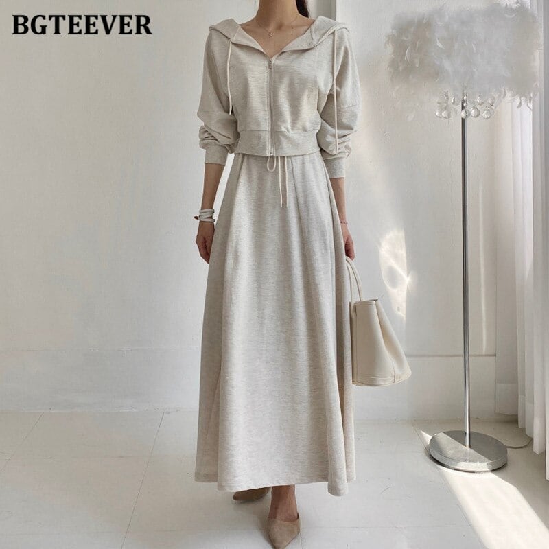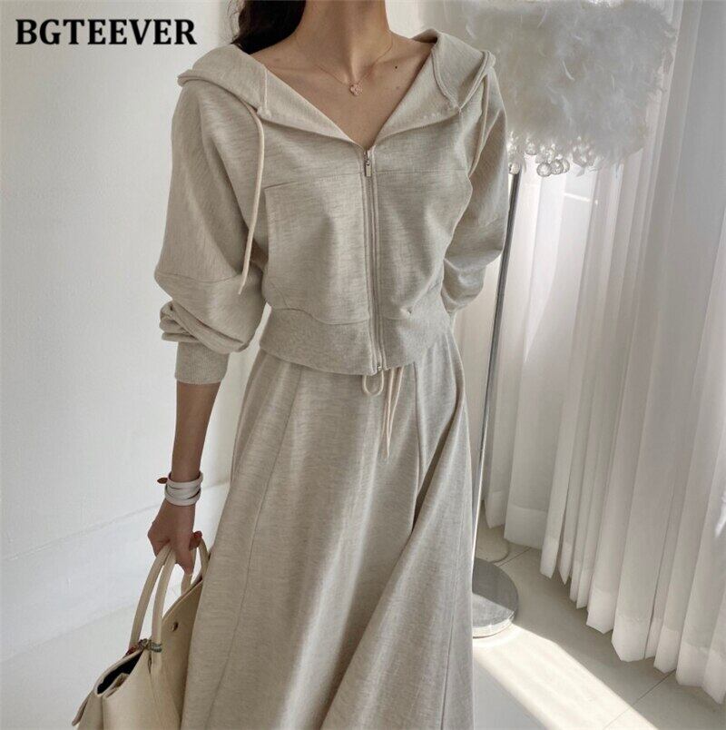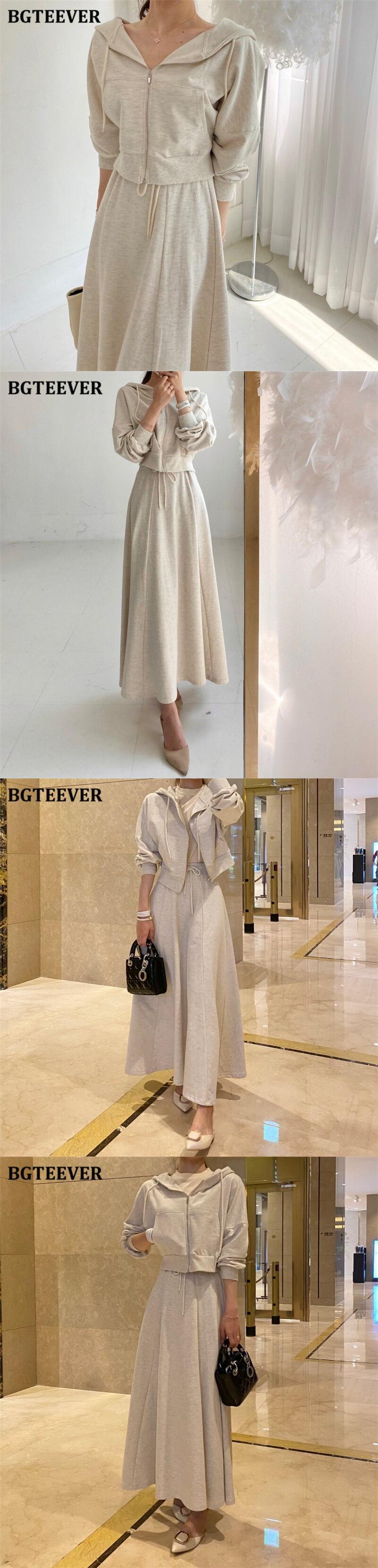 【新作】【送料無料】 春の女性2ピースセットショートフード付きスウェットシャツ&伸縮性ウエストレースアップAラインスカートトラックスーツ エラスティック スプリング 春物 12b122339990791