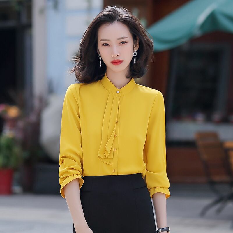 【新作】【送料無料】 2020年春夏新作レディーストランペットスリーブシフォンシャツ銀行総裁インタビュー作業服洋服洋服イエローブラウス-アリババ スプリング 春物 サマー 夏物 12b396159135817