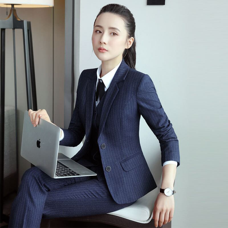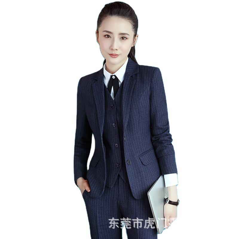 【新作】【送料無料】 ストライプスーツプロのスーツ女性の春と秋のファッション小さなスーツ気質ツーリングインタビュースーツレディースマルオーバーオール-アリババ スプリング 春物 オータム 秋物 12b381592189593