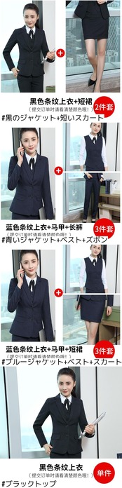 色:ダークブルーのシャツ,ブルージャケット+パンツ,ブルージャケット+ショートスカート,黒のジャケット+短いスカート,青いジャケット+ベスト+ズボン,ブルージャケット+ベスト+スカート,ブラックトップ,黒のジャケット+ズボン,黒のジャケット+ベスト+ズボン,黒のジャケット+ベスト+ショートスカート,ダークブルーパンツ,ダークブルーのスカート,黒いズボン,黒スカート