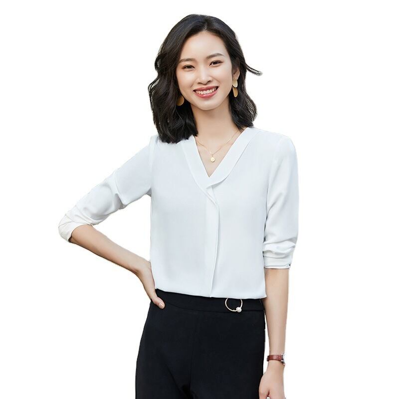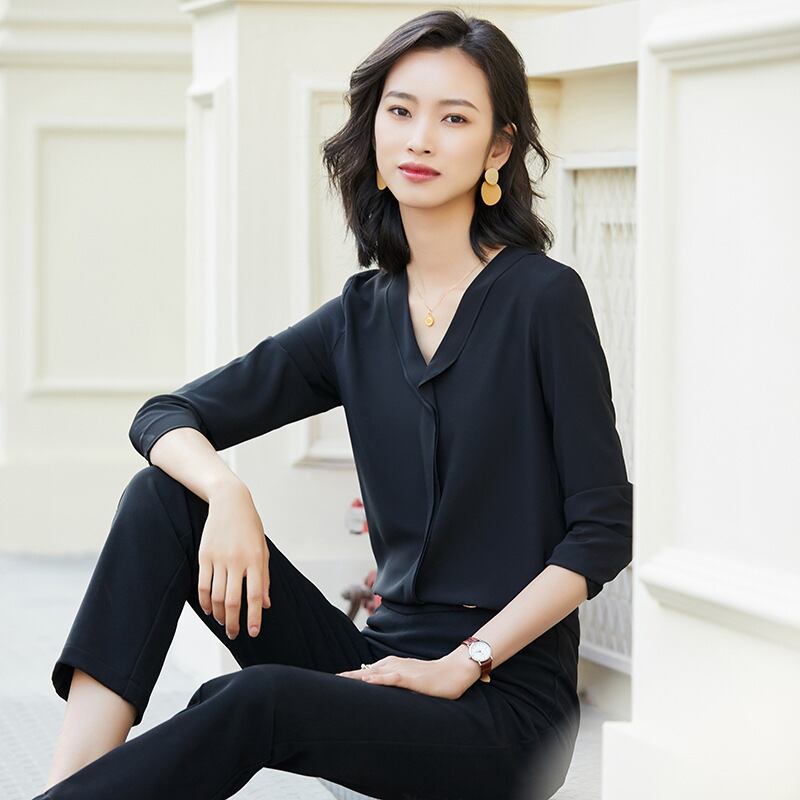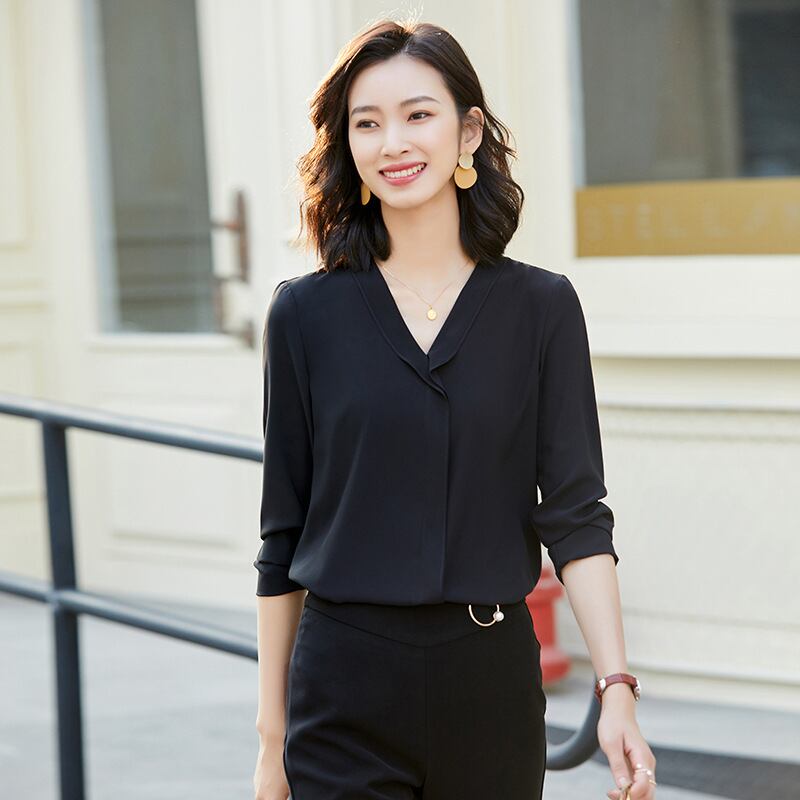 【新作】【送料無料】 2021レトロ香港フレーバーシフォントップ長袖シャツブラックシャツレディース秋冬スタイルオールマッチニッチ-アリババ ロング オータム 秋物 ウィンター 冬物 12b356317034730