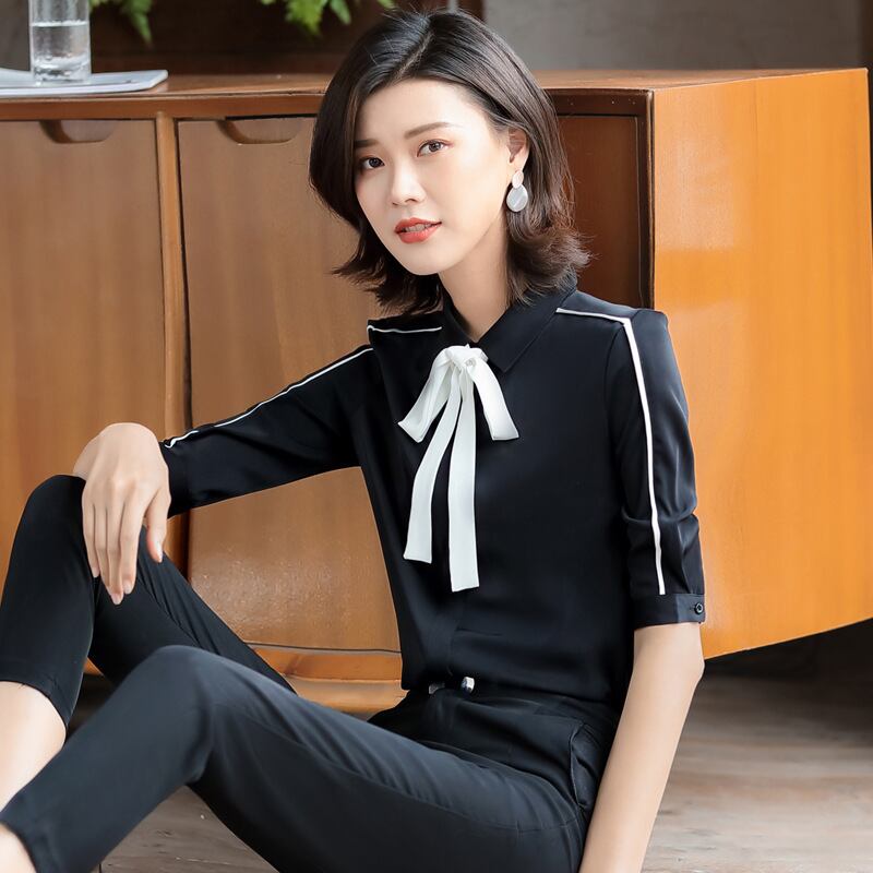 【新作】【送料無料】 用途の広いデザインセンスニッチ2020新しいレトロな香港フレーバーシフォントップスリーブシャツ-アリババの黒シャツ女性の秋と冬のモデル ブラック オータム 秋物 ウィンター 冬物 12b345534594632
