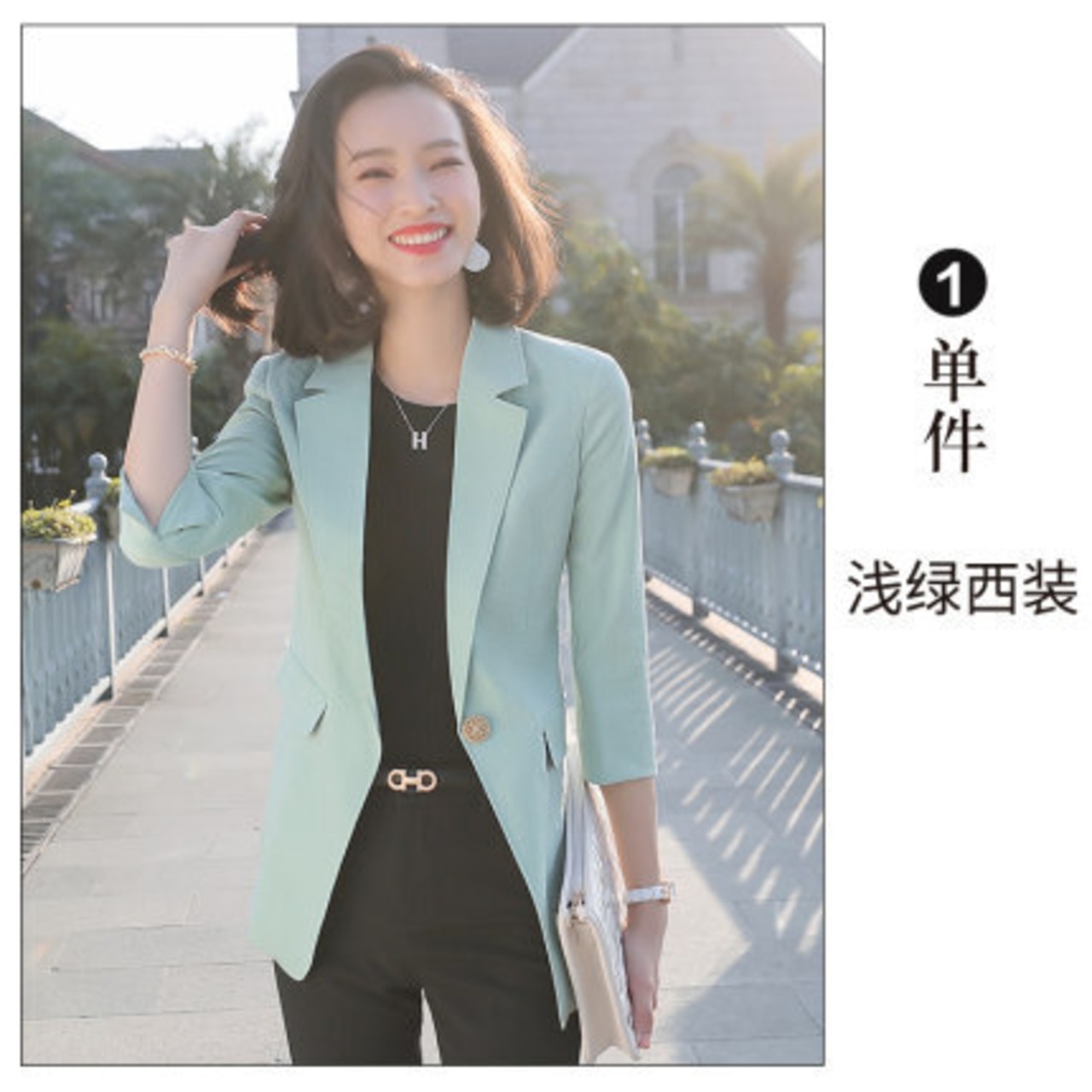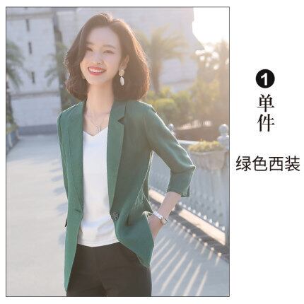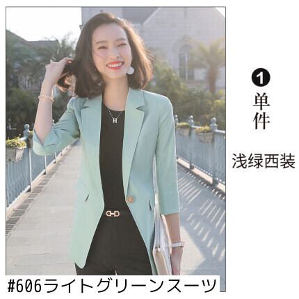 【新作】【送料無料】 レディーススーツグリーンジャケット春の新しい英国スタイルのプロフェッショナルウェア7ポイントショートスリムデザインニッチスーツ-アリババ スプリング 春物 12b323784218704