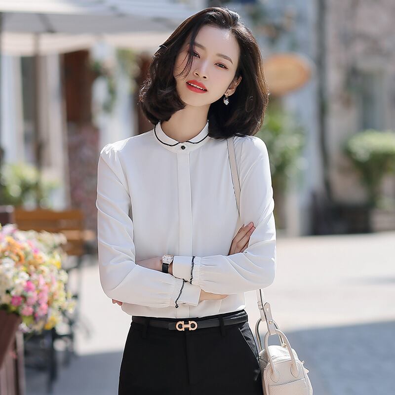 【新作】【送料無料】 シフォンホワイト長袖シャツ2020春夏新作レディースボトムシングルウェアオーバーオールOL気質シントップ-アリババ ロング スプリング 春物 サマー 夏物 12b35774746912