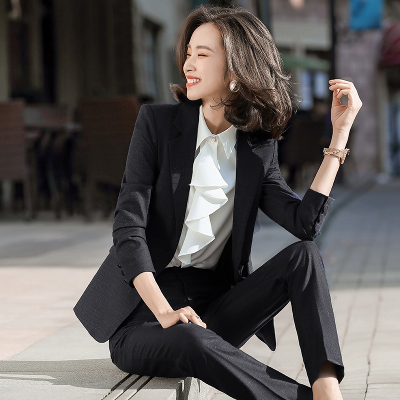 【新作】【送料無料】 -プロのスーツの女性のファッションの気質を仕事に終わらせる ホワイト ブルー 会社 学校 通勤や通学にも 12b399497591973