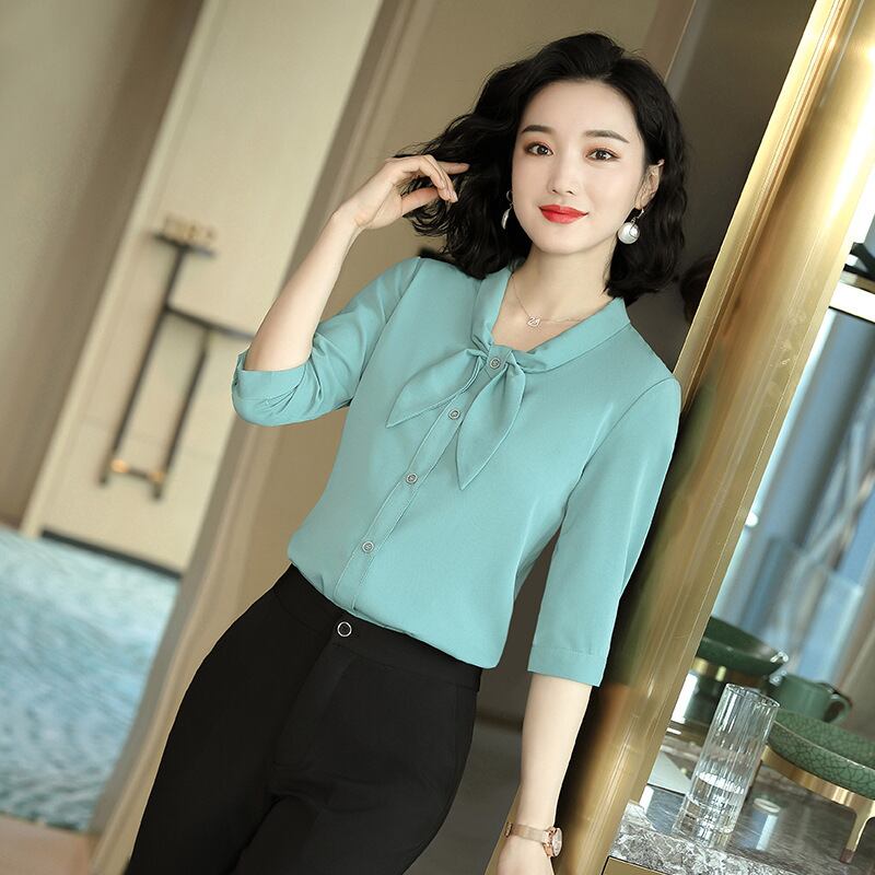 【新作】【送料無料】 白いシャツの女性2020年春夏新しい中袖ブラウス女性ファッション気質シフォンプロシャツオーバーオール ホワイト スプリング 春物 サマー 夏物 12b398845784267