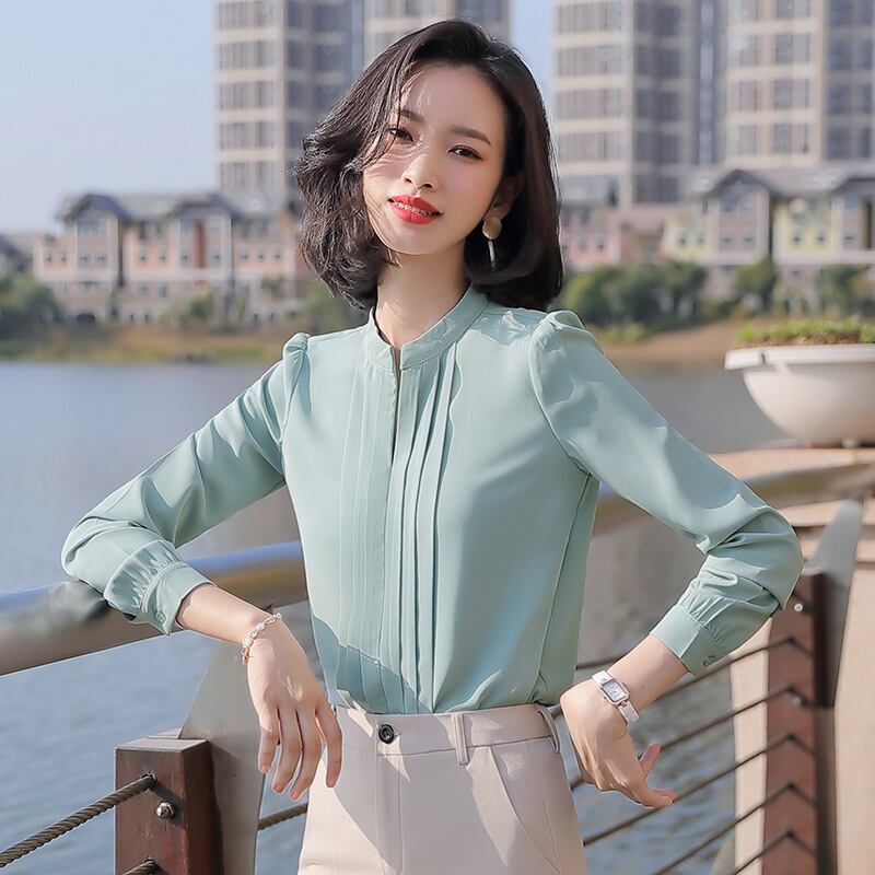 【新作】【送料無料】 シフォンホワイト長袖シャツラウンドネック2020春夏新作レディースボトムシングルウェアプロホワイトカラーバンクトップ-アリババ ロング スプリング 春物 サマー 夏物 Oネック 12b380504645908