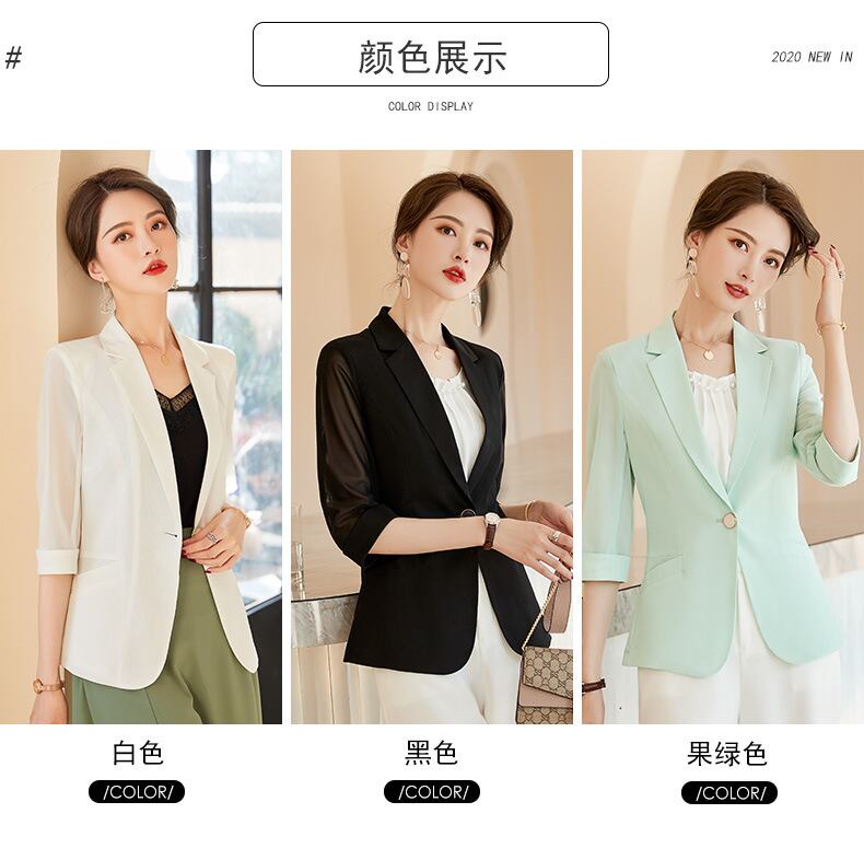 【新作】【送料無料】 ホワイトメッシュシースルーシンスモールスーツ2020春夏新作レディース七分袖スリムスーツジャケットトップス-アリババ スプリング 春物 サマー 夏物 12b344054569462