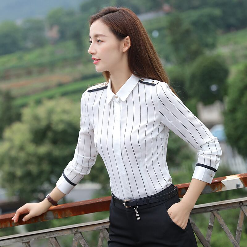 【新作】【送料無料】 秋冬プロウェア長袖シャツ女性OLビジネスパンツツーピースストライプ気質マルウェア女性オーバーオールスーツ-アリババ ロング オータム 秋物 ウィンター 冬物 12b370278544938