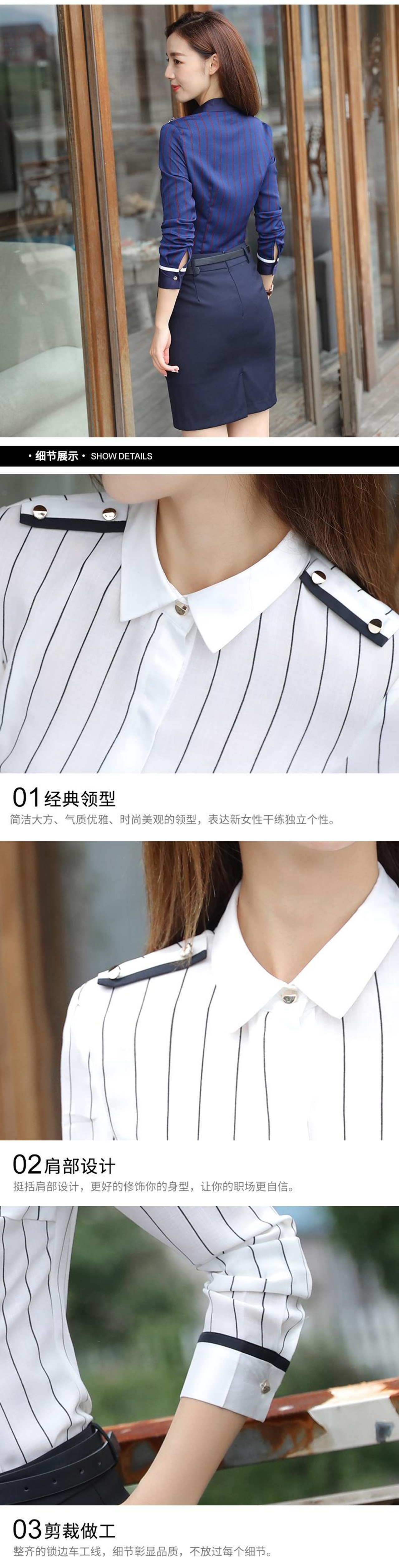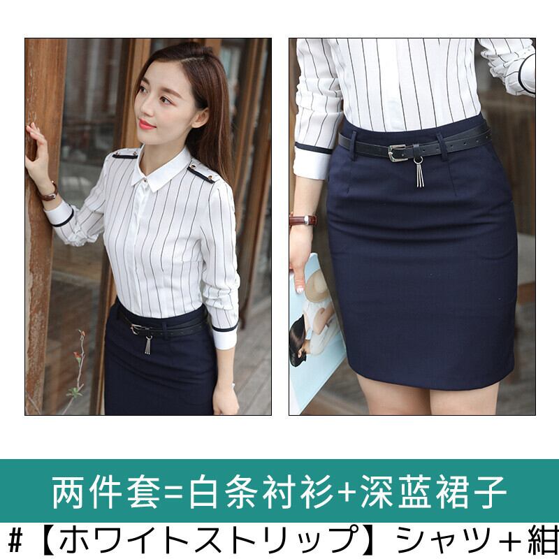 色:【ホワイトストリップ】シングルシャツ,【ホワイトストリップ】シャツ+紺スカート,【ホワイトストリップ】シャツ+ブラックパンツ,【サファイアブルーストリップ】シングルシャツ,【サファイアブルーストリップ】シャツ+紺スカート