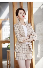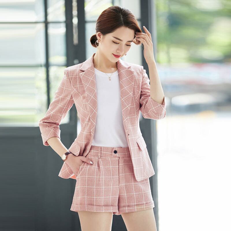 【新作】【送料無料】 2021年夏の新しいショーツスモールスーツスーツ女性英国スタイル気質カジュアルプロ格子縞スーツジャケット女性-アリババ サマー 夏物 ブルマー 12b379847671181