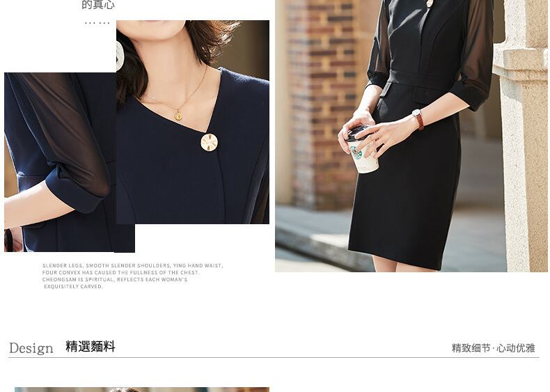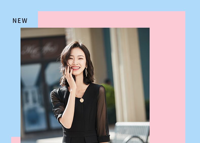 【新作】【送料無料】 2020年春夏新作レディースラウンドネックブラックメッシュステッチ5点袖ハイウエストバッグヒップAラインドレス-アリババ ハイウェスト スプリング 春物 サマー 夏物 Oネック 12b383973794814