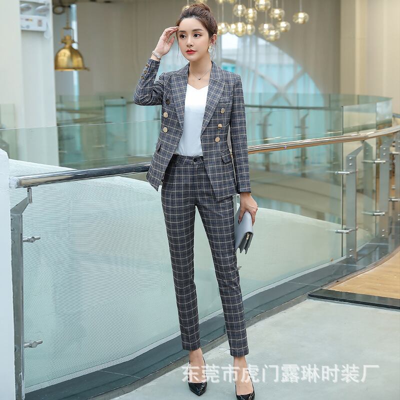 【新作】【送料無料】 格子縞のスーツの女性2020年春と秋の新しいファッション格子縞のスーツマルウェアレディース気質プロのスーツの女性-アリババ スプリング 春物 オータム 秋物 12b395959924434