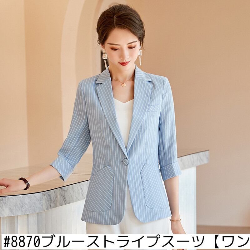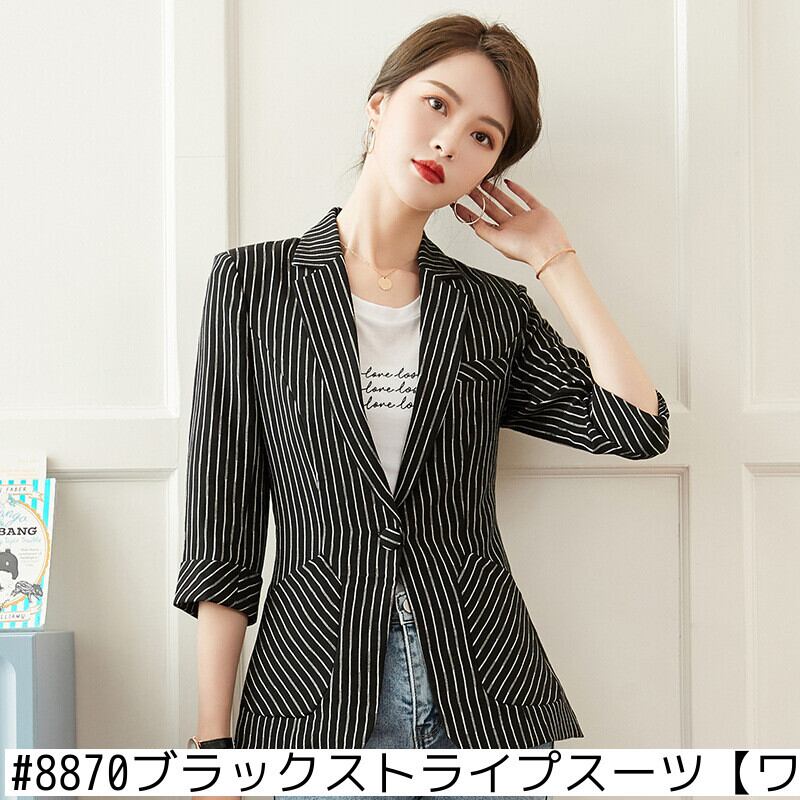 【新作】【送料無料】 ストライプの七分袖スーツ2020春と夏の新しい女性のカジュアルな気質プロの薄い香りのジャケットジャケット-アリババ スプリング 春物 サマー 夏物 12b383793888084